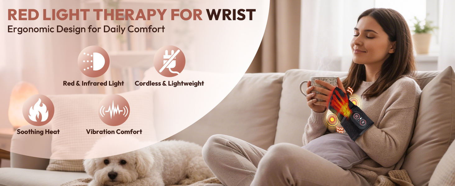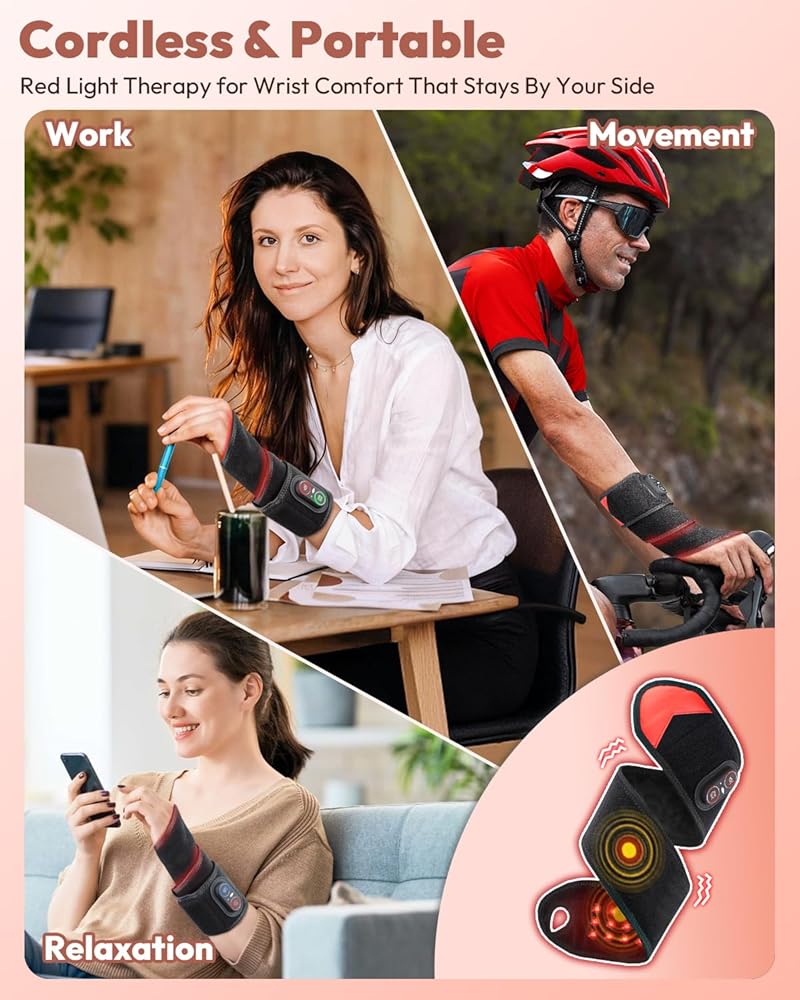 Red Light Therapy for Wrist Hands Wrap, Cordless Infrared Heating Pad with Vibration for Body, Arm, Knee, Foot, Wearable Heated Wrist Massager Brace, 660nm/850nm (Black)