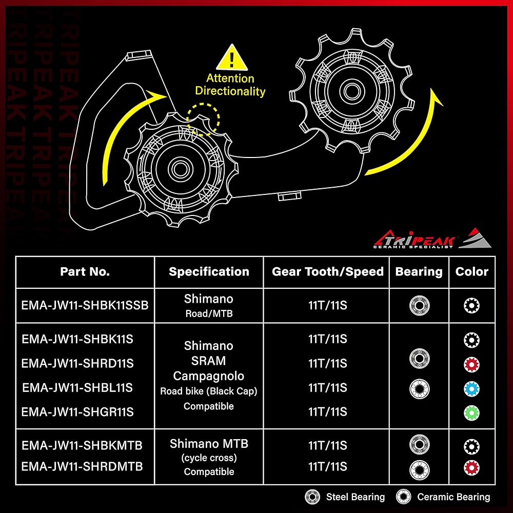 11T SRAM/Shimano Ceramic Hybrid Bearing Jockey Wheel Pulley Set for SRAM 10/11Speed Road/MTB, Shimano 10/11 Speed Road/MTB Cyclocross Gravel Rear Derailleur