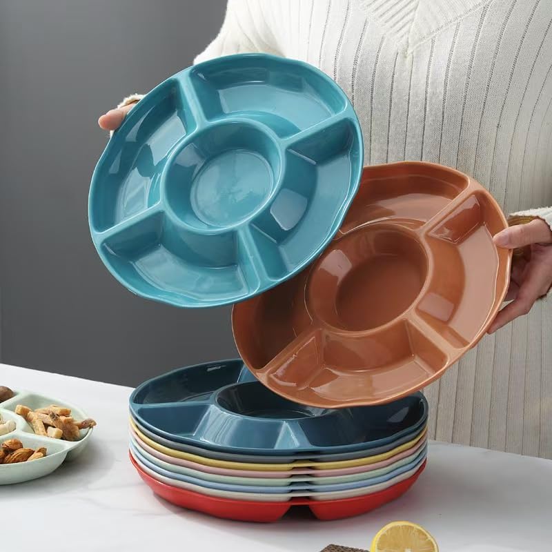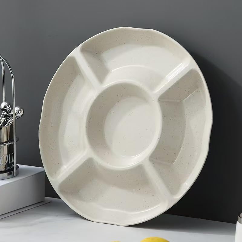 With its partitioned design, each compartment keeps different foods separate, preventing mixing of flavors and maintaining the freshness of each item. It's ideal for serving a variety of small bites like crackers, dips, or even finger foods