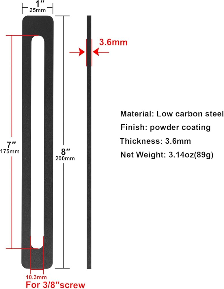- Slot hole size: for 3/8" screw