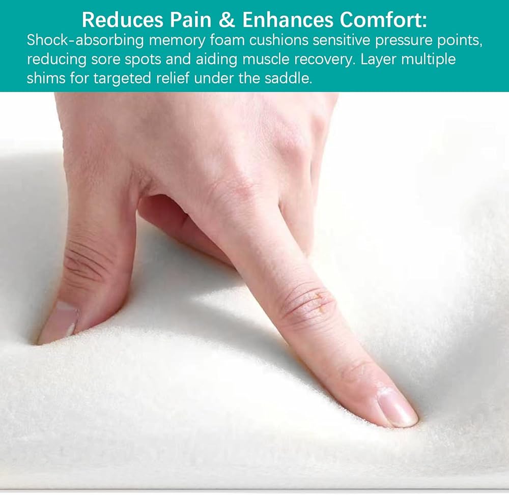 Reduces Pain & Enhances Comfort: Shock-absorbing memory foam cushions sensitive pressure points, reducing sore spots and aiding muscle recovery. Layer multiple shims for targeted relief under the saddle.