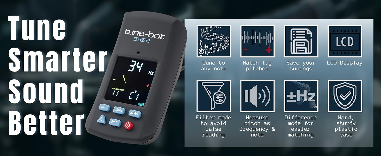 Easy, Accurate Drum Tuning – Clip the Tune-Bot Studio onto your drum and get clear, precise pitch readings for each lug, helping you tune faster and get your drums sounding even and balanced without guesswork.