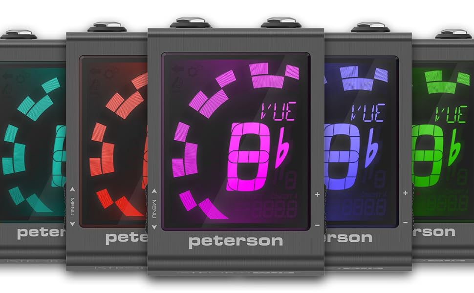 StroboVUE boasts a high-definition LCD screen with a variable-color LED backlight. The user-selectable colors can be customized for personal preference or optimized for visibility in different ambient lighting conditions. Colors can also be assigned to stock or user presets, reducing menu navigation time and providing greater confidence when tuning on stage. StroboVUE incorporates an Always-On Buffered Output, designed to boost instrument signal and prevent tone loss in signal chains with multiple low-impedance pedals or long cable runs. Its buffered output mode preserves sonic quality across the entire instrument range, keeping your tone intact. With over 100 exclusive Sweetened Tunings™ and numbered Guided Tuning presets, StroboVUE supports a wide variety of instruments and playing styles. Sweetened Tunings, exclusive to Peterson, are designed to correct inherent tuning issues found in many instruments. Guided Tunings display numeric string values instead of traditional note names, ensuring intuitive, accurate, and fast re-tuning for open and alternative tunings. These were created for both beginners exploring alternate tunings and experienced players who switch tunings frequently. Numerically expressed scales are also included.
