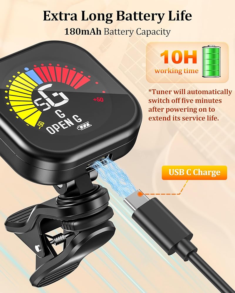 【Rechargeable & Long-Lasting】Built-in battery offers up to 10 hours of tuning. USB-C charging for easy power-ups.