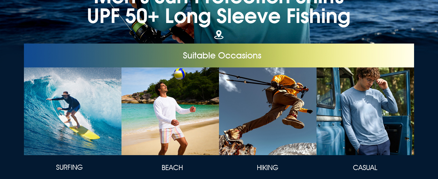 Idea for All Outdoor Activities: UPF 50 long sleeve shirts suitable for fishing, swimming, surfing, hiking, outdoor running, great as a sun protection shirt year-round and as a base layer in colder months