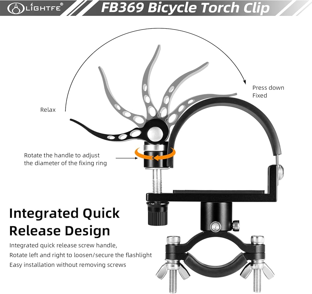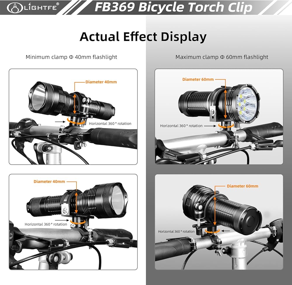 1.The FB369 bicycle lamp bracket is very suitable for large-sized bicycle lamps and installation of flashlights. It is suitable for flashlights with a diameter of 40-60mm, or 1.57-2.36 inches, and similar sized items. It is made of aluminum alloy and stainless steel, which is sturdy and durable.
