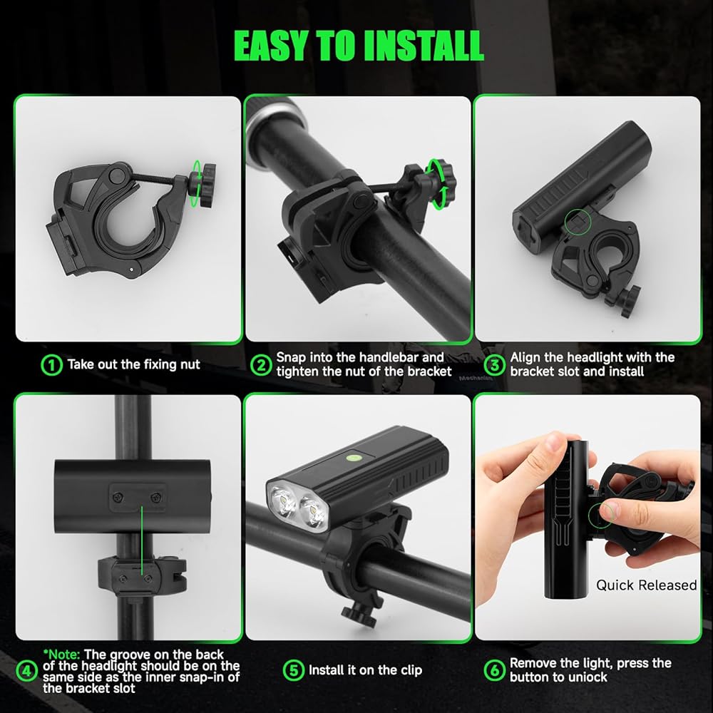 【Anti-Scratch Silicone Padding】The rubber adjustable clamps protect both the bike handlebar and the headlight from scratches while improving grip and shock absorption.