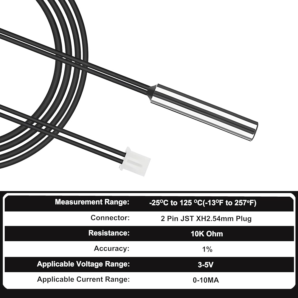 Wide Measuring Range: Our 10K temperature sensor probe is able to tolerate the widest measuring range (-25°c to 125°c (-13℉ to 257℉)).Applicable to water temp sensor automotive,hvac temperature probe,water temp gauge.Perfectly Compatible with Various Common Water Dispensers, Hvac Equipment, Aquariums, Brewing Equipment, and More—The Ideal Replacement Parts for Engineers and DIY Enthusiasts,thermister for primo water thermostat