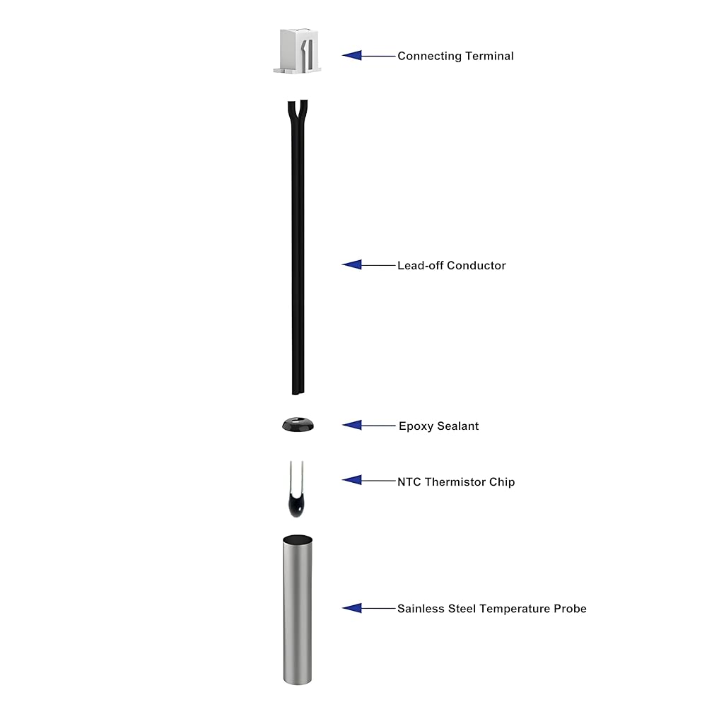 Stainless Steel Probe: This NTC 10K thermistor temperature sensor for car,has 5*25mm stainless steel housing, which is waterproof, moisture-proof and anti-rust.Extension Cable for DEWENWILS thermostat Digital Temperature Controller.Suitable for Wide Range of Applications,Incubation, Home brewing, Green House, Pet, Reptile, Mushrooms, Breeding room,Breeding, Cured meat.thermister for avalon water dispenser parts.