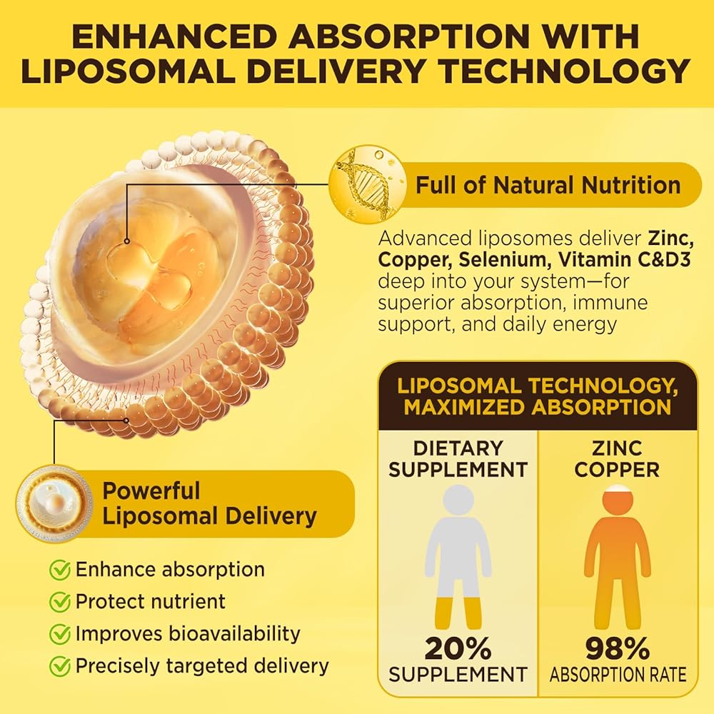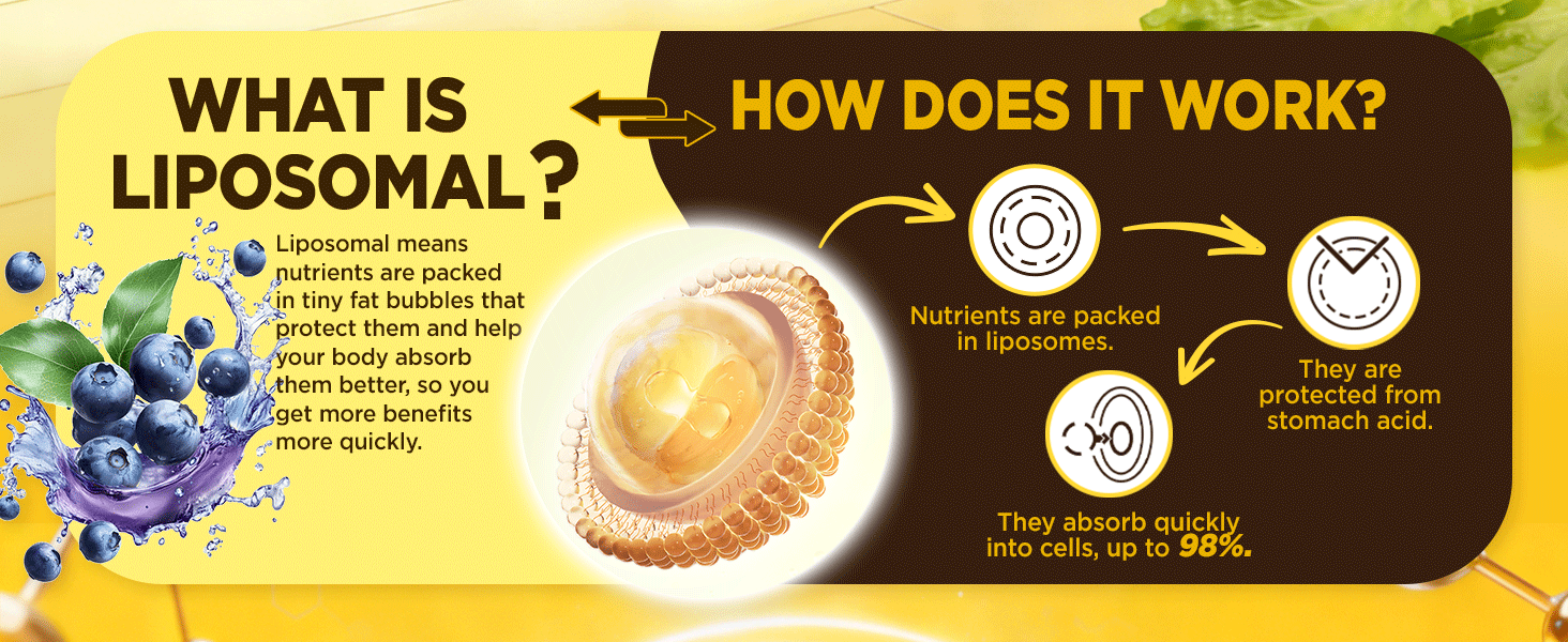 Liposomal Delivery for Better Absorption: Liposomal technology supports gentle, efficient nutrient absorption, helping Vitamin C, Vitamin D3, and key minerals be absorbed more effectively—easy on the stomach