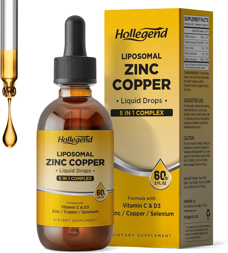 Liposomal Zinc Copper Liquid Drops, 50mg Zinc Picolinate with Copper, Selenium, Vitamin C&D3 for Immune & Thyroid Support, Fast-Absorbing Mineral Supplements for Men & Women, Blueberry, 2 Fl Oz