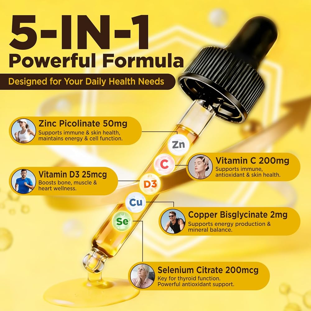 Advanced Immune Support: Packed with 50 mg Zinc Picolinate, 200 mg Vitamin C, and 1000 IU Vitamin D3, this advanced liquid formula delivers powerful daily immune support and overall wellness in a highly absorbable form