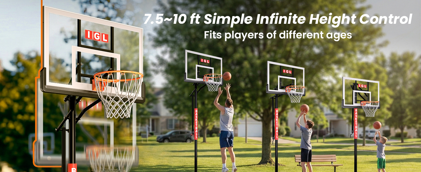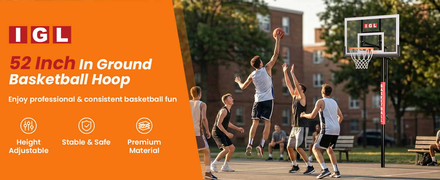 IGL In Ground Basketball Hoops Outdoor, 52" In Ground Basketball Hoop, 7.5-10FT Adjustable In Ground Basketball Hoops & Goals with 18 Inch Breakaway Rim for Driveway/Backyard/Court
