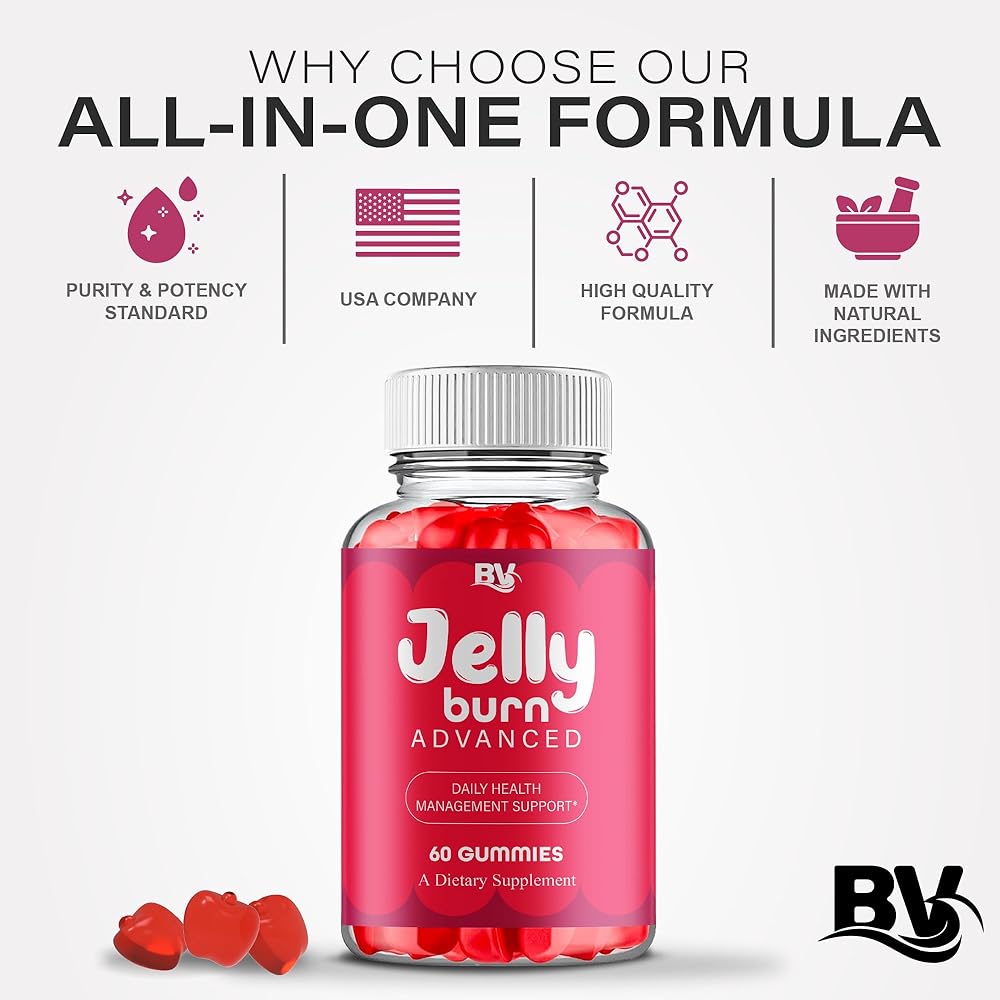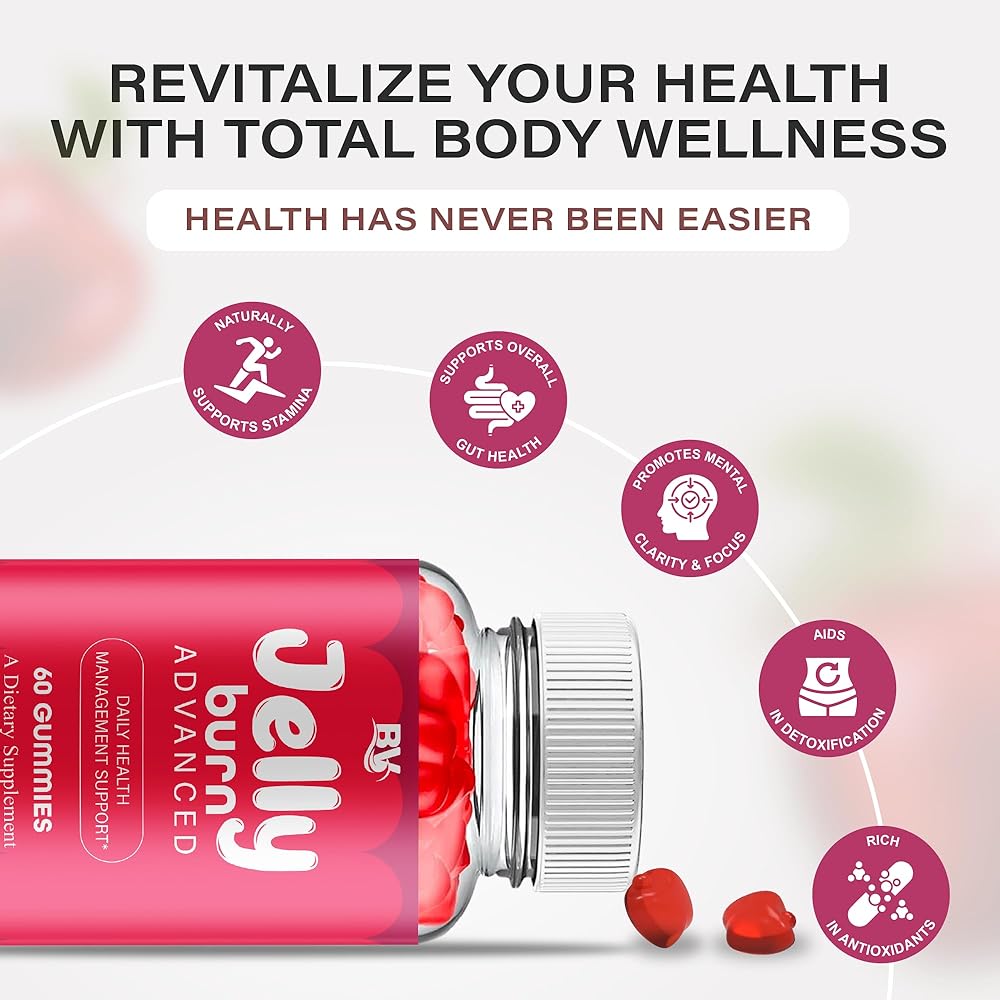 BLUE VIBE JellyBurn Advanced Gummies, JellyBurn Premium Health Management and Overall Wellness Support Gummy Supplement, JellyBurn Overall Health Support Supplement (1 Pack - 60 Gummies)