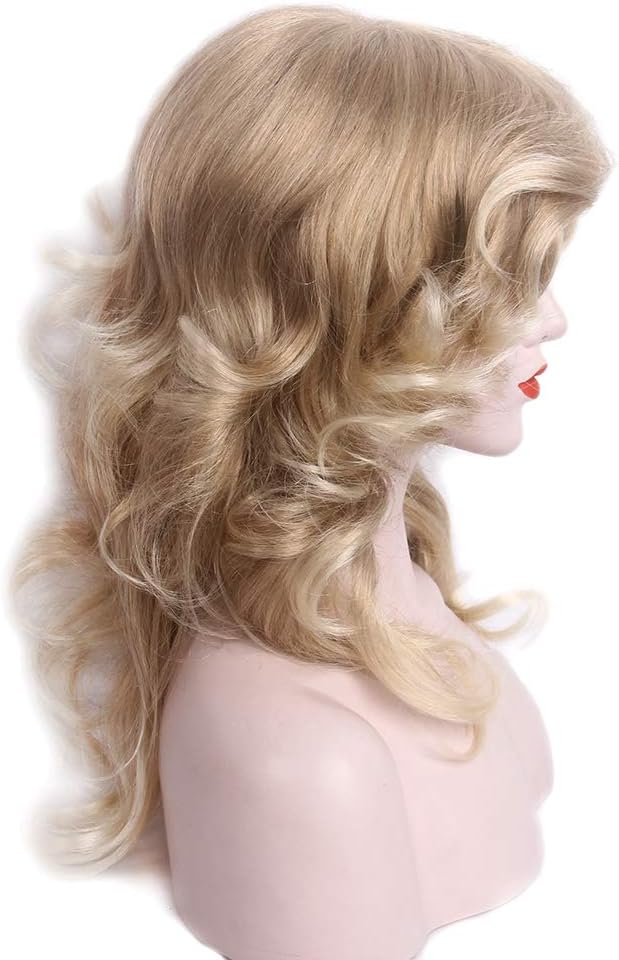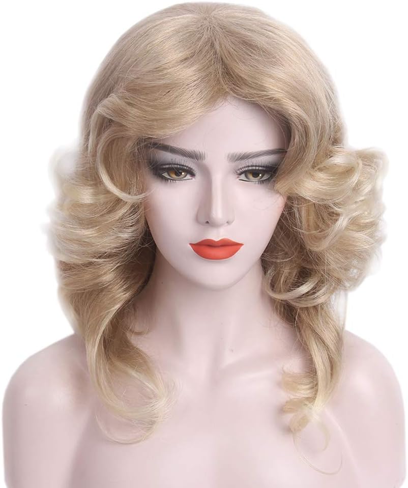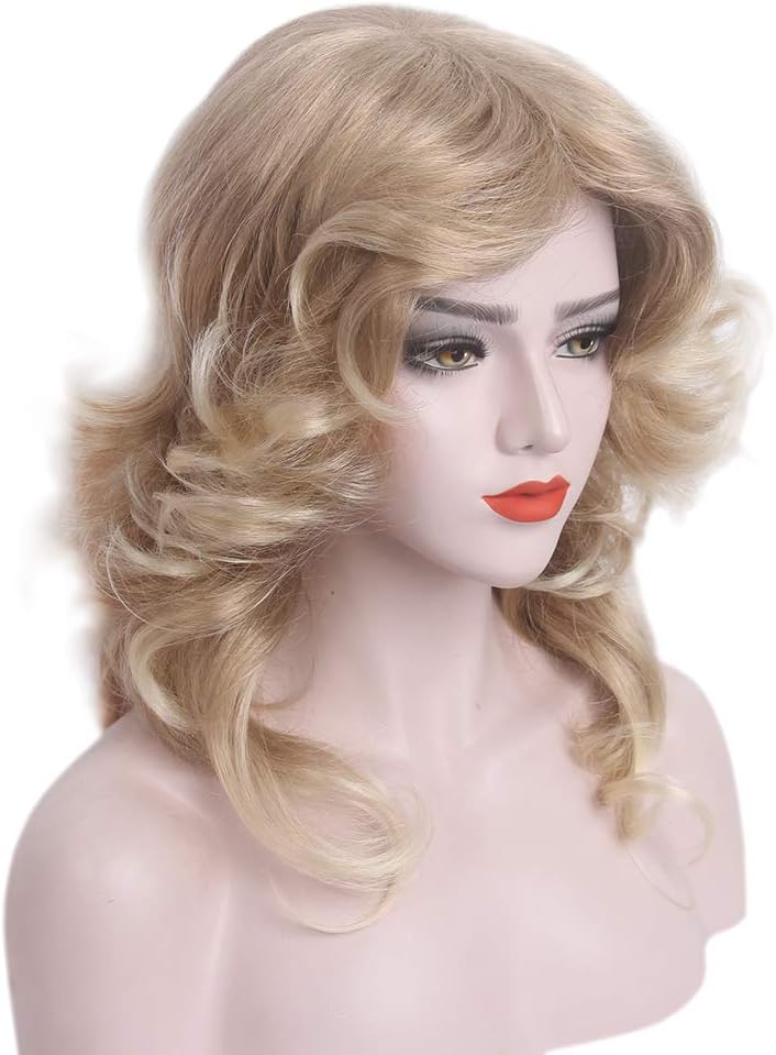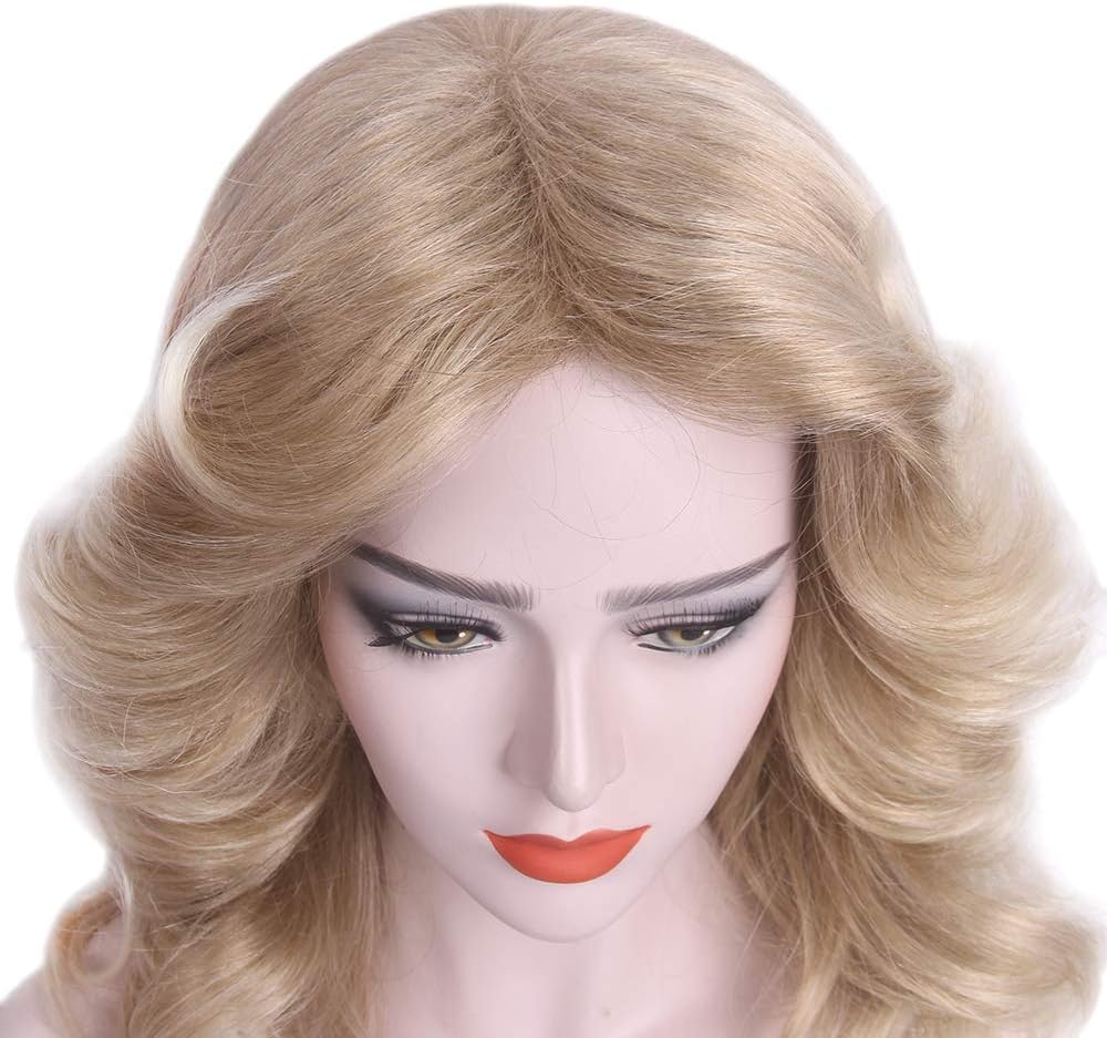 【70s Disco Wig】The 70s blonde wig are use Kanekalon flame redardant fiber, very soft and light, natural like your own hair,very safe.