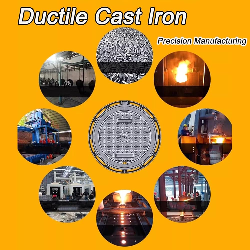 • 2.This Durable Manhole Cover is made from High-Quality Ductile Iron, offering enhanced strength over standard cast iron. Designed for Heavy-Duty applications, this Metal Drain Grate promises reliable performance without rusting, even in tough weather. Perfect for various outdoor environments, it combines practicality and durability to fulfill your requirements effectively.
