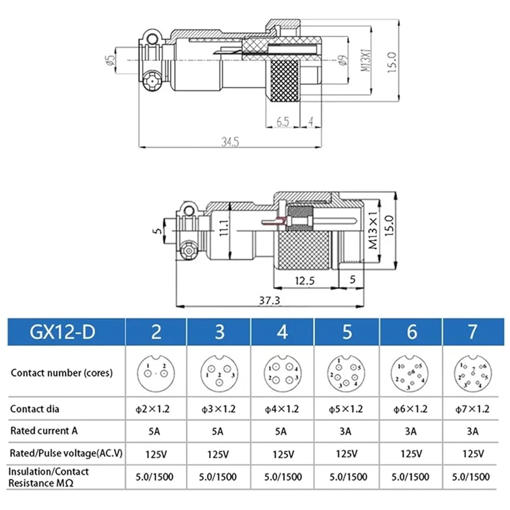 5Set GX12 Nut/Docking Type Male&Female Connector Screw Power SocketPlug Terminal 234/5/6/7 Pin Cable Pluggable Port