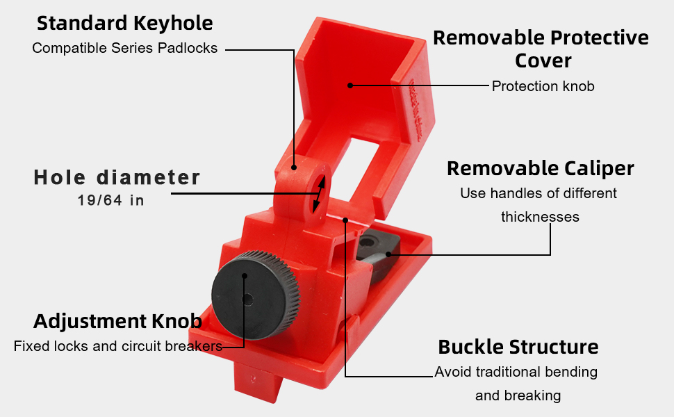 Precision Engineered: This circuit breaker lockout device suitable for various single hole and built-in tripping devices, switch size 5/8-inch by 1/2-inch, lock shackle hole diameter is 19/64-inch. Effectively isolate hazardous energy and prevent unauthorized access.