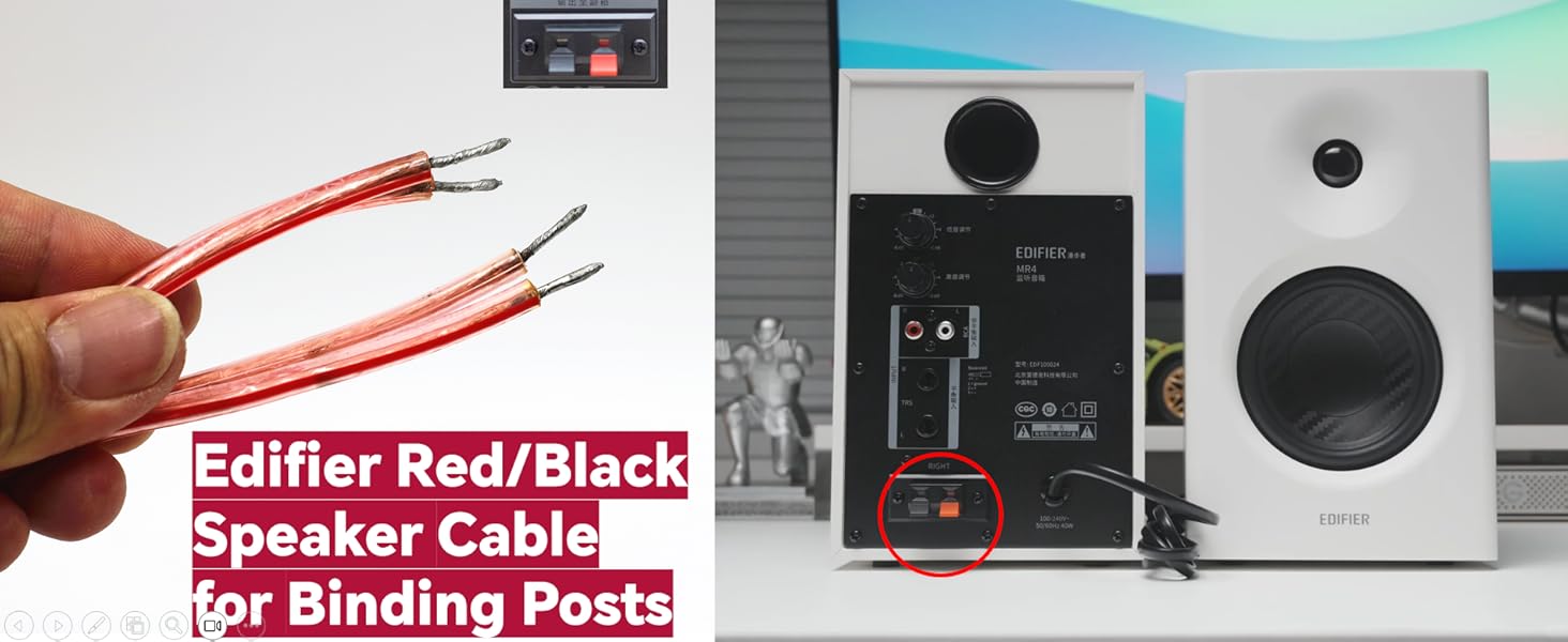 Tool-Free Quick-Connect Design – Slide-open red (positive) and black (negative) spring clips for secure, polarity-correct terminal attachment—no screws or tools needed. Ensures reliable speaker synchronization and stable operation.