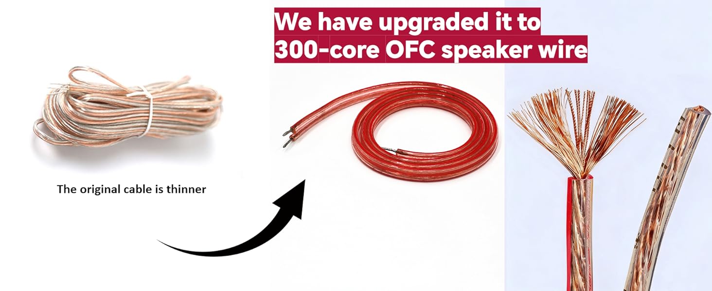 300-Core Oxygen-Free Copper (OFC) for Pure Signal Transfer – Ultra-low resistance design with 300 high-purity copper strands ensures minimal signal loss and maximum power efficiency, delivering richer detail and dynamic range compared to standard cables.