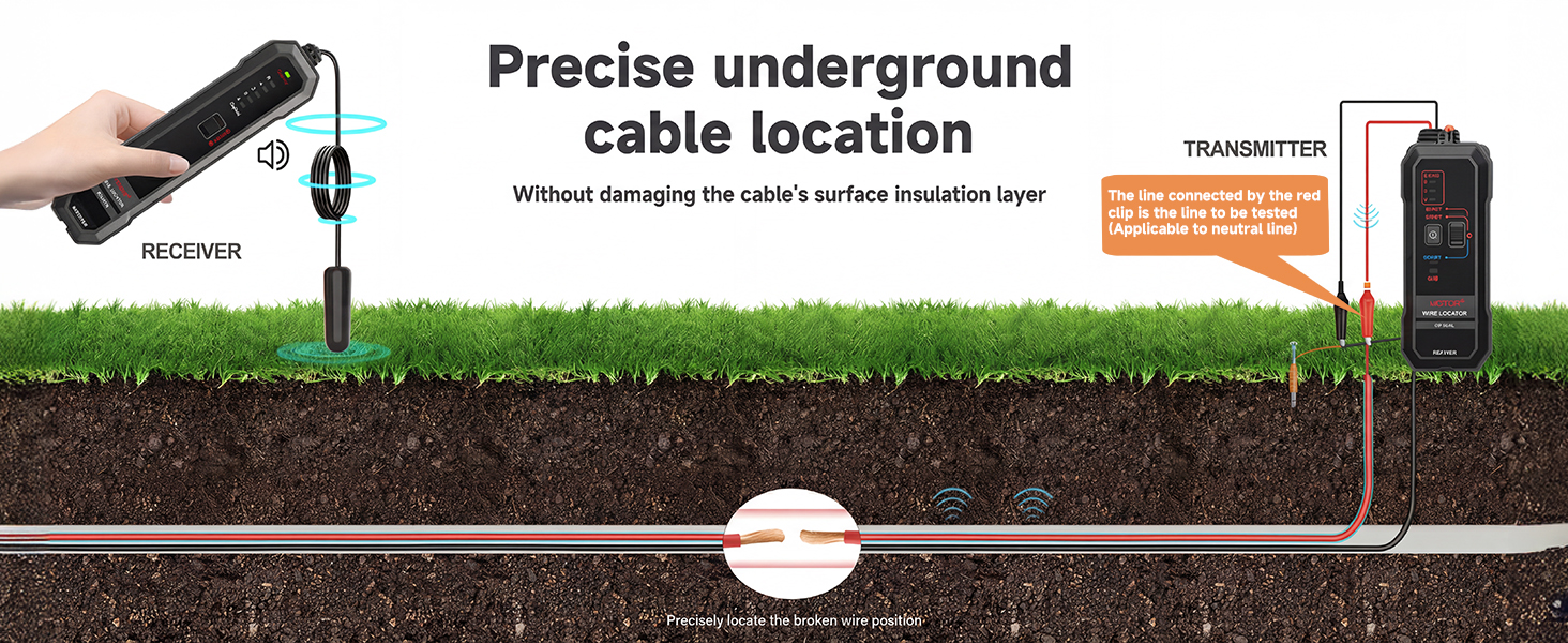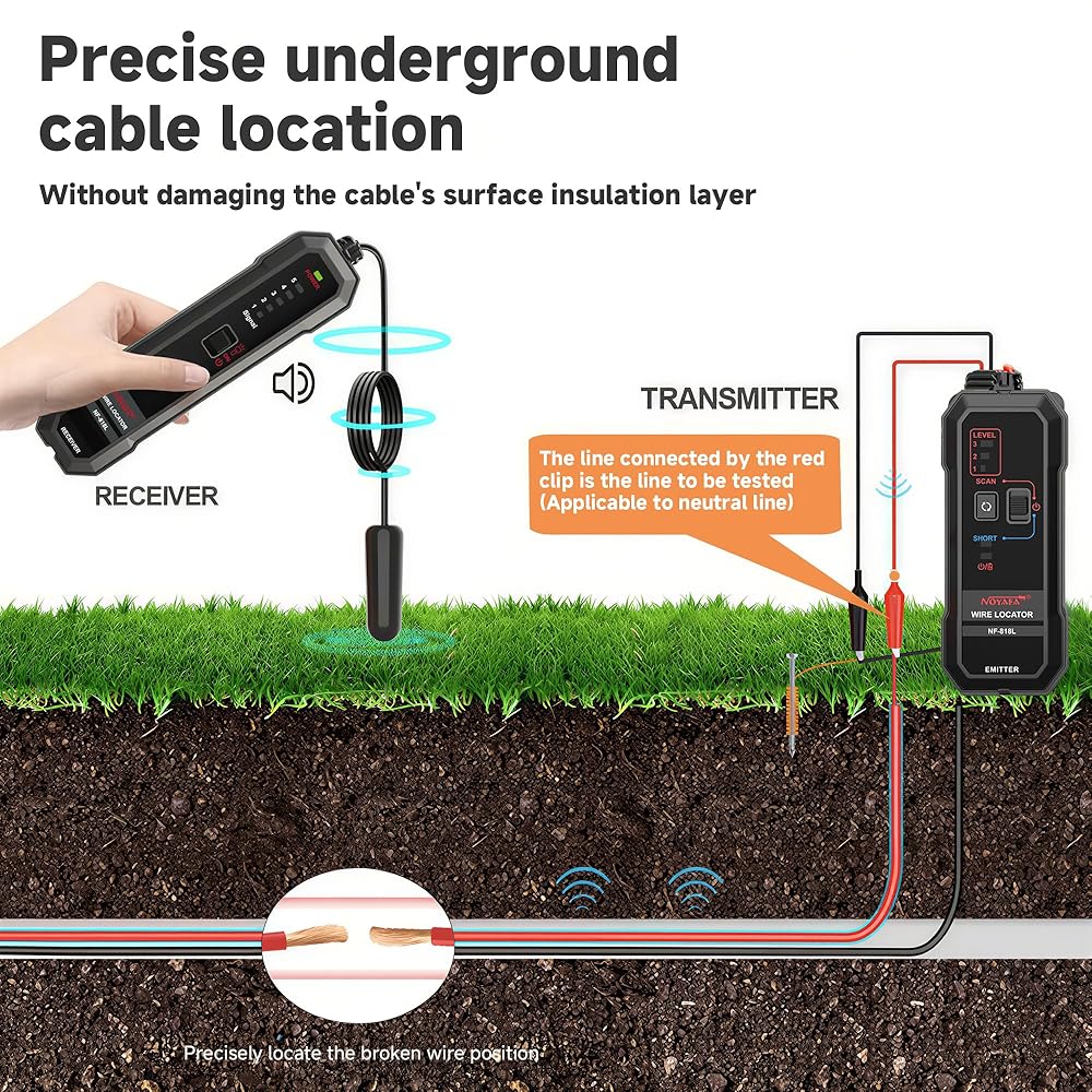 Precise Underground Cable Location: NOYAFA NF-818L Enhanced Underground Cable Tracker quickly and accurately detects buried or wall-penetrating cables, easily locating breakpoints and cable routes. High-precision signal positioning makes maintenance, troubleshooting, and installation more efficient, avoiding blind digging or damage to walls