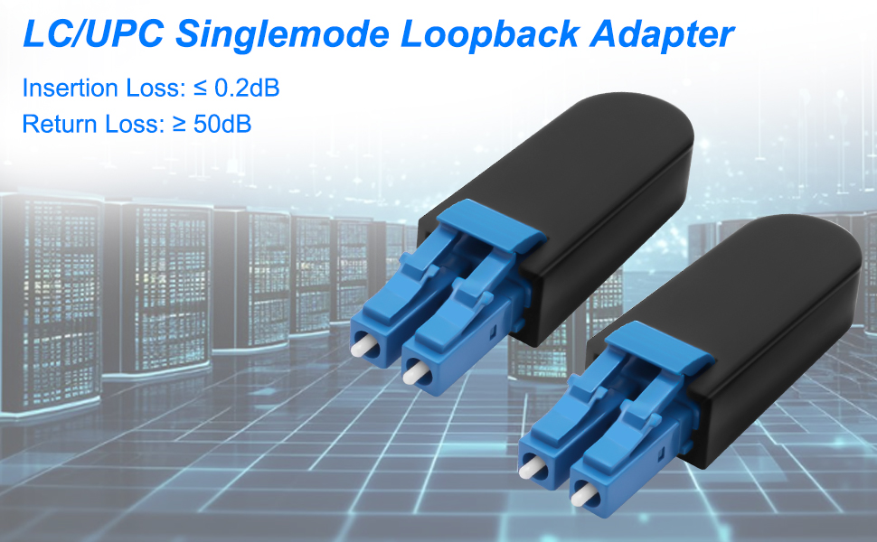 • LC/UPC fiber optic loopback adapter adopts ceramic ferrules, enjoying low loss and high loopback loss. Insertion loss: ≤ 0.2dB; Return loss: ≥ 50dB; Inserted more than 1000 times