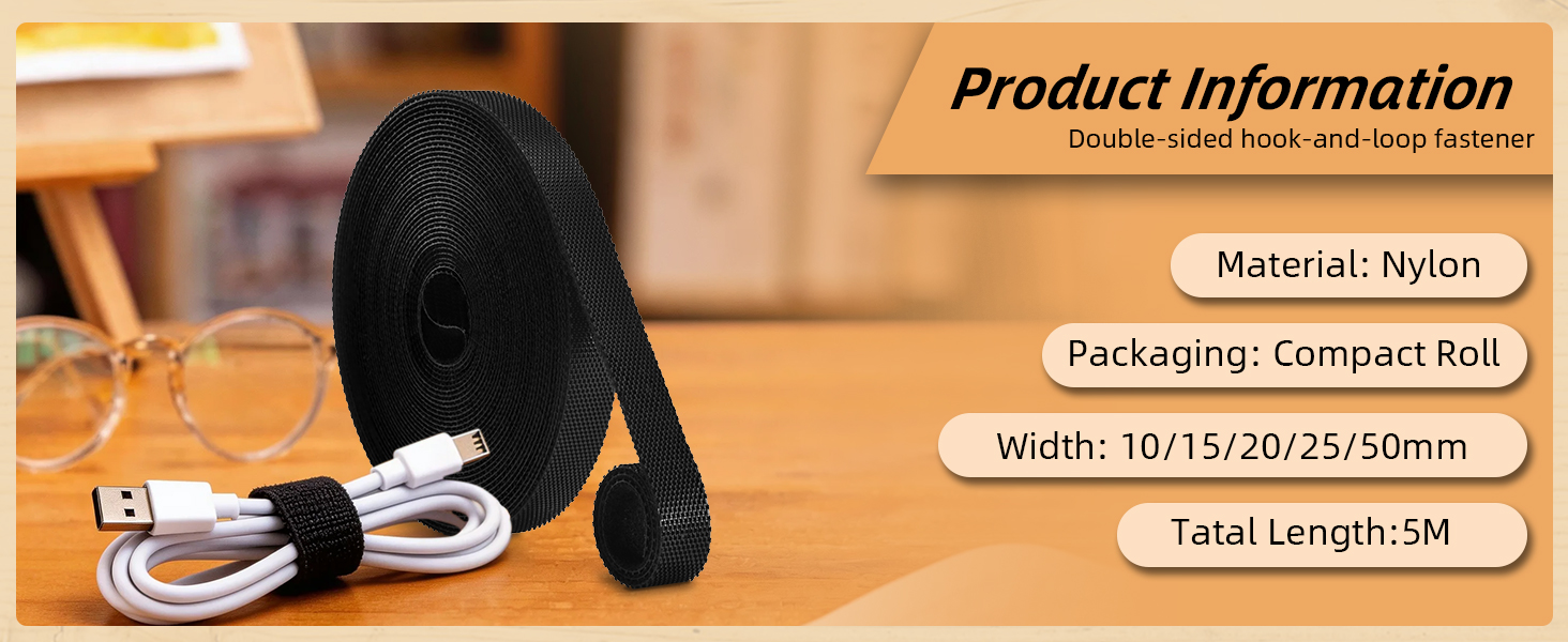 Free-Size & Customizable: For bundling items of different sizes, hook-and-loop strap can be cut to custom lengths for different bundling needs, perfectly fitting the bundling needs of various-sized items and eliminating the hassle of choosing the right size once and for all.