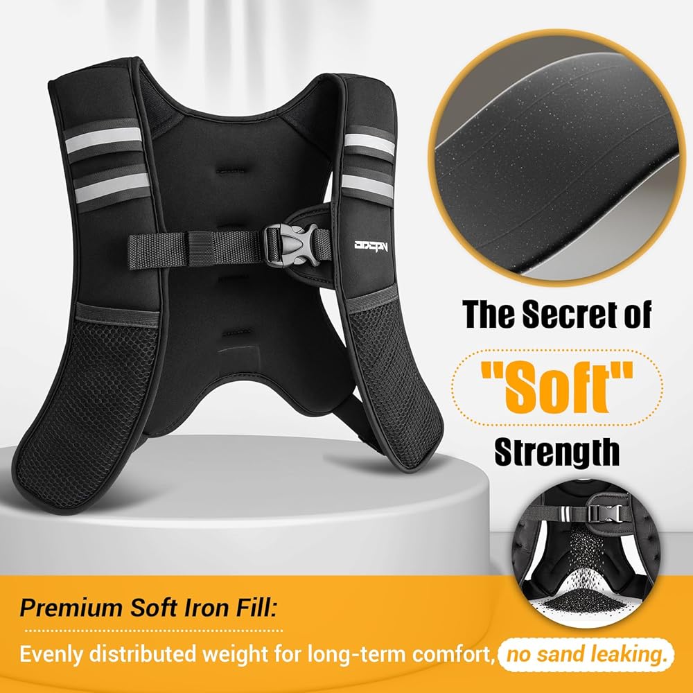 THE SECRET OF A COMFORTABLE WEIGHTED VEST – Say goodbye to leaking sand. Our core is filled with a premium Soft Iron & Silicone composite, engineered as a highly comfortable weighted vest for extended wear. This solid-state filling molds to your body curves, delivering evenly distributed resistance that won't shift. The rattle-free design minimizes impact, providing the "Soft Strength" needed for calisthenics or a rucking vest for women and man, ensuring a smooth experience unlike rigid iron plates.