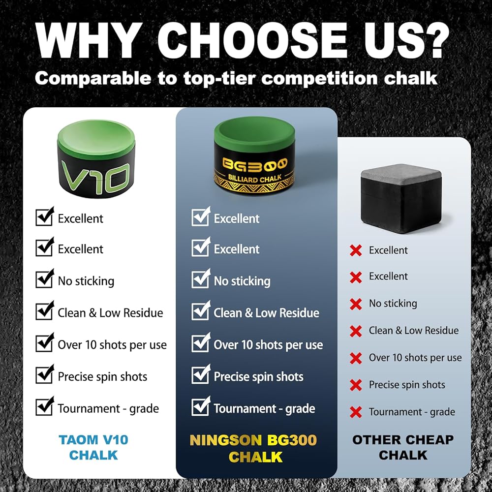 Pro-Level Performance & Spin Control: Made with premium billiards chalk formula to optimize friction between cue tip and ball, delivering better spin, accuracy, and control. Helps protect cue tips and extend their lifespan for consistent performance