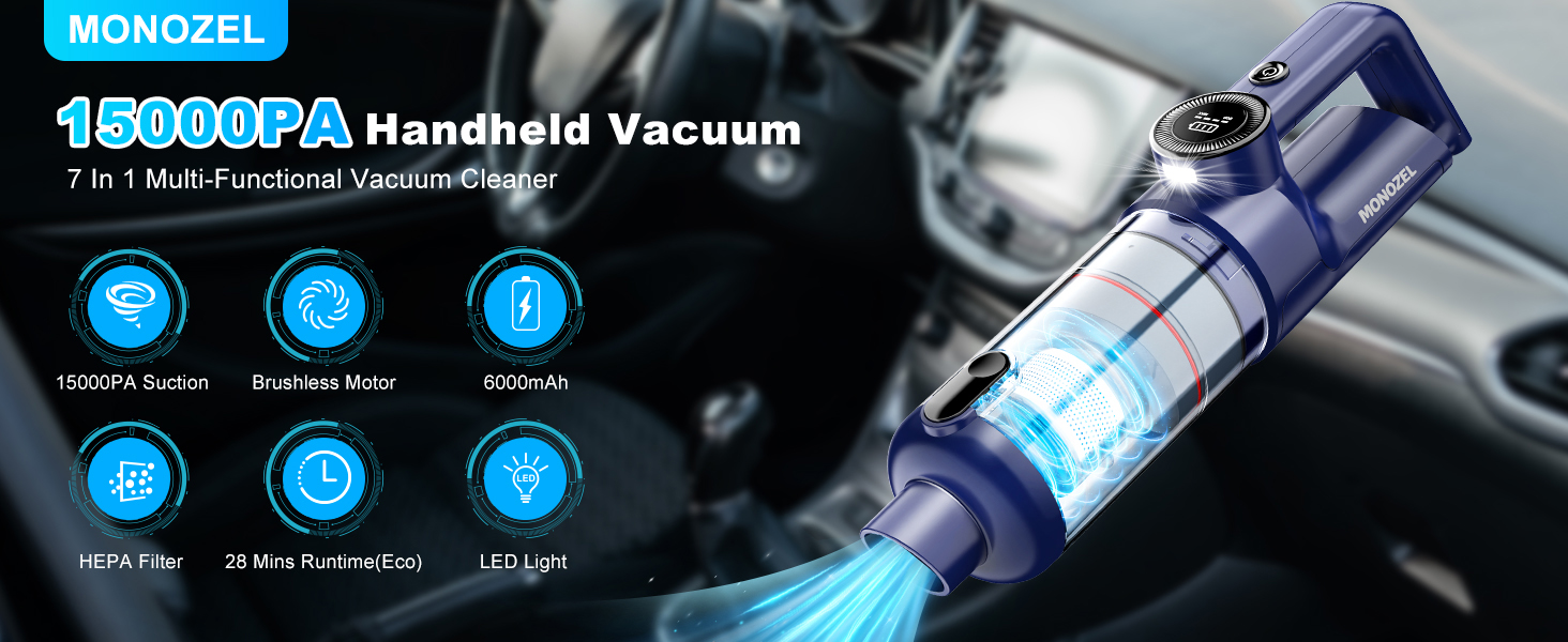 DURABLE VACUUM & CUSTOMER SUPPORT: With the upgraded brushless motor, our hand vacuum has a longer motor life. You can put it in your home, car, or even office. If you have any questions or problems about our rechargeable hand held vacuum cordless, don't hesitate to contact us. MONOZEL Customer Team provides 24-hour technical support, quality guarantee, and money-back services.