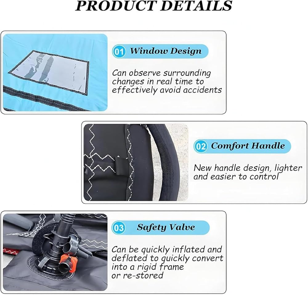 • 【CLEAR VIEW】: The wind wing is lightweight, allowing for effortless maneuverability on the water. It features an open window design that provides a clear view, enabling you to observe weather changes while enjoying your time in the ocean to avoid accidents.