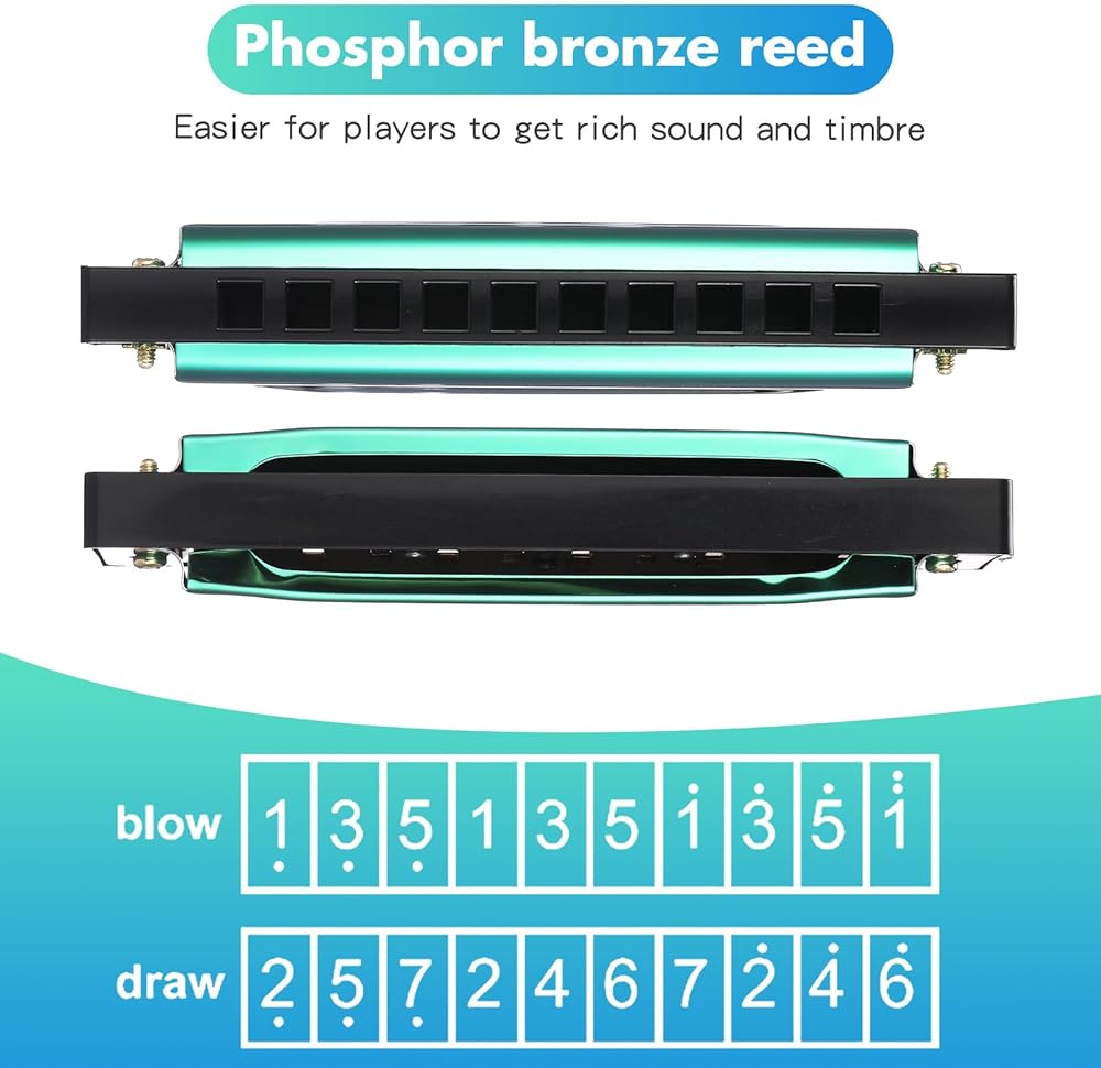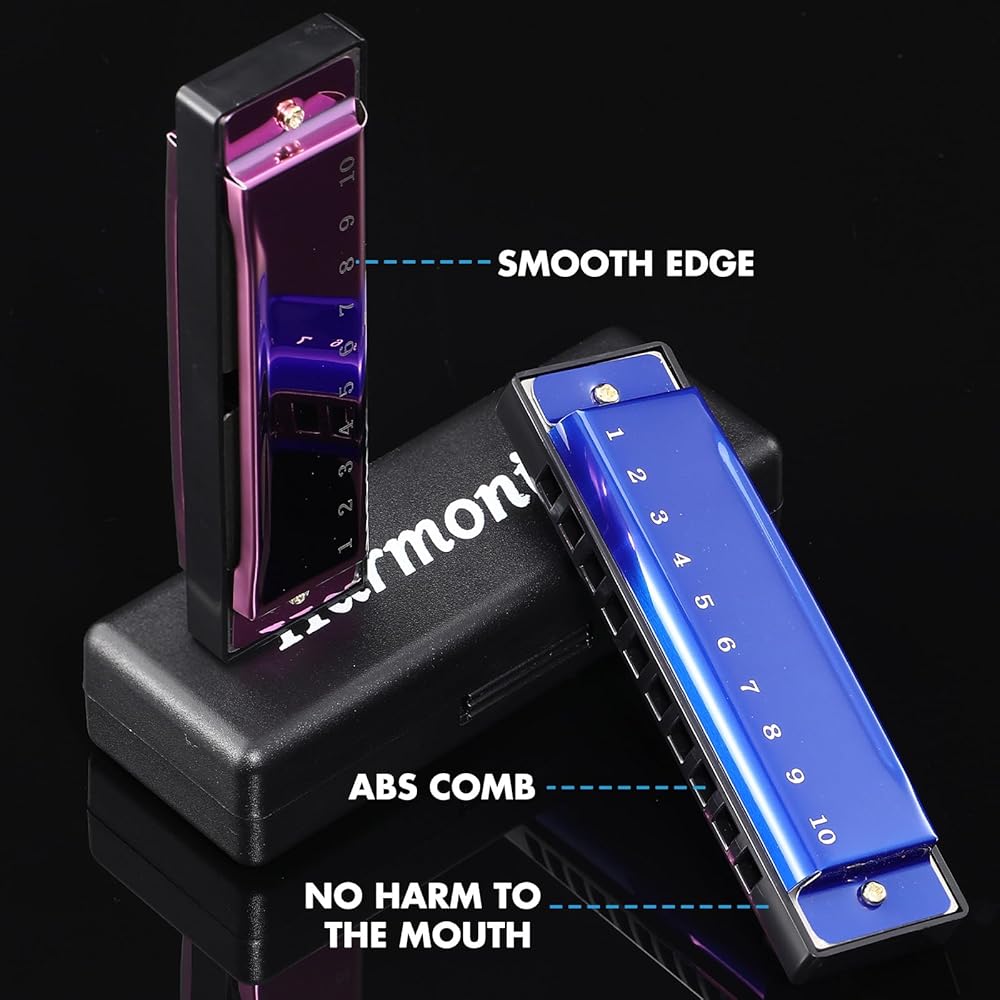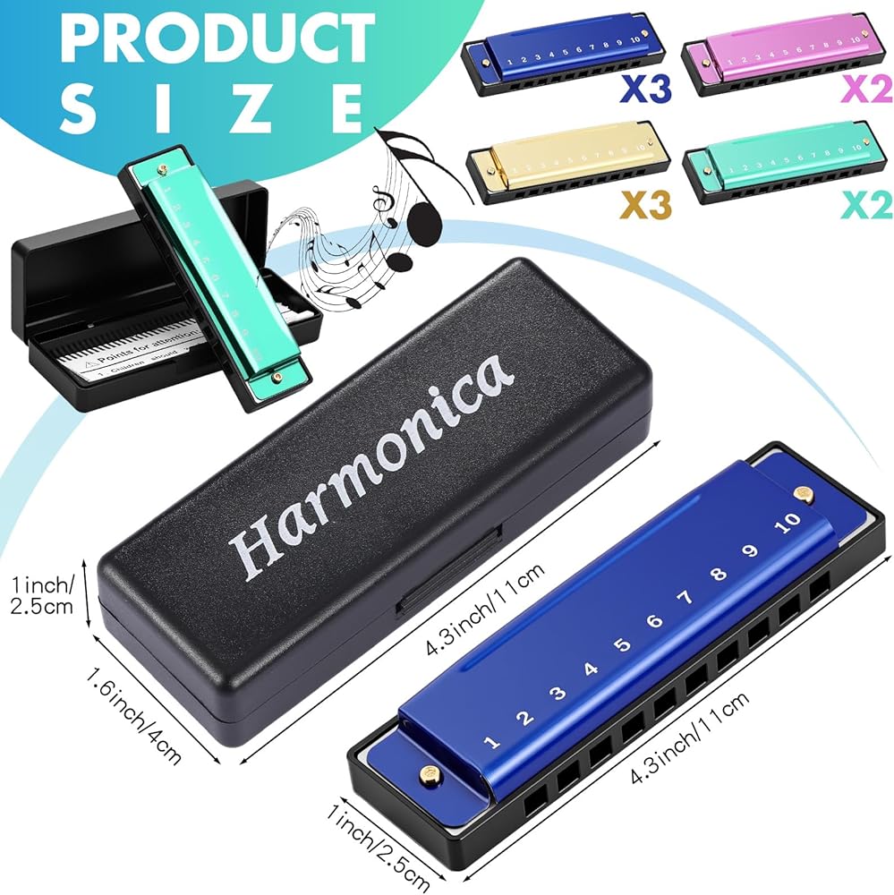 10 Holes harmonicas will cultivate children's music interest. Harmonica also suitable to use on stage performances, business meeting gift, birthday party, classroom teaching, go travel, family day, party games, harmonicas great for professional harmonica players and beginners