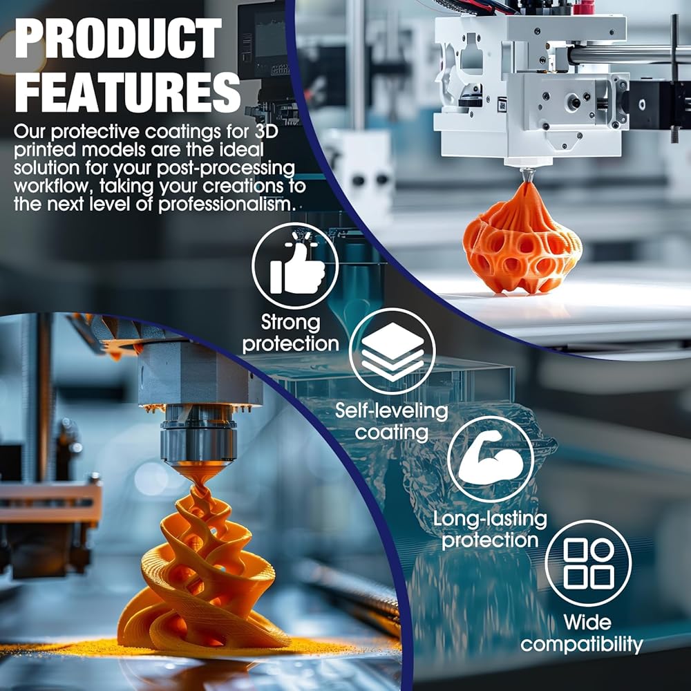 HIGH-PERFORMANCE 3D PRINTING COATING: Clear topcoat for smoothing and finishing 3D printed parts. Improve the surface smoothness, strength and detail performance of the model, while providing waterproof protection.