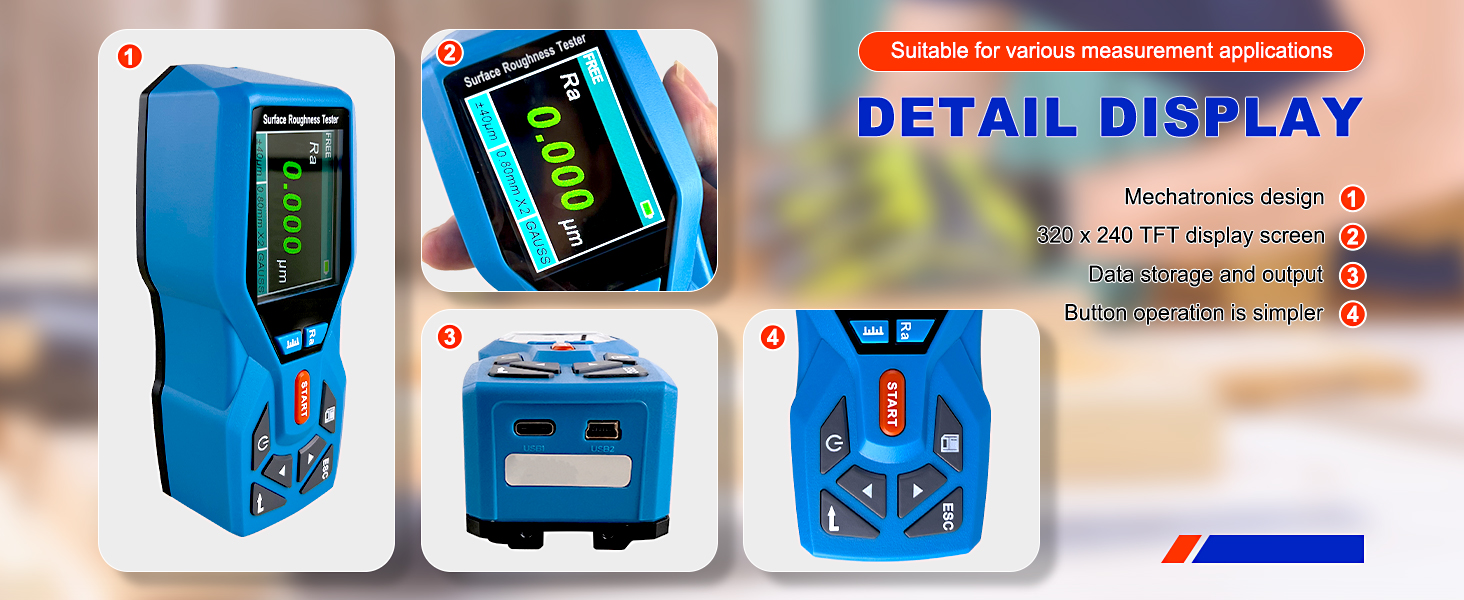 Surface roughness tester is a high-precision instrument for measuring surface finish, capable of assessing the surface roughness of various machined components, including flat surfaces, inclined surfaces, external cylindrical surfaces, curved surfaces, small holes, grooves, and axles.