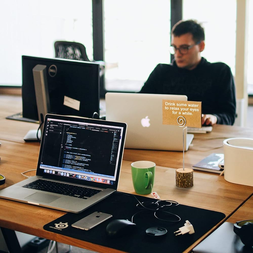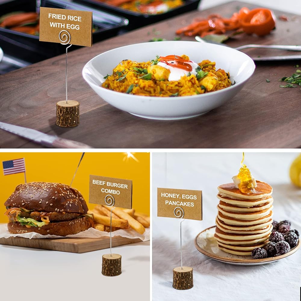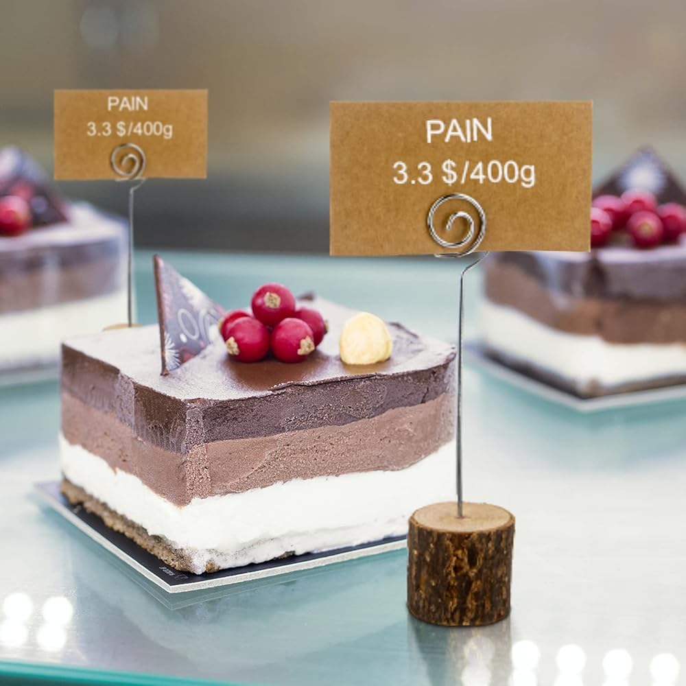 20 Pcs Rustic Wood Place Card Holders with Swirl Wire and 30 Pcs Kraft Place Cards