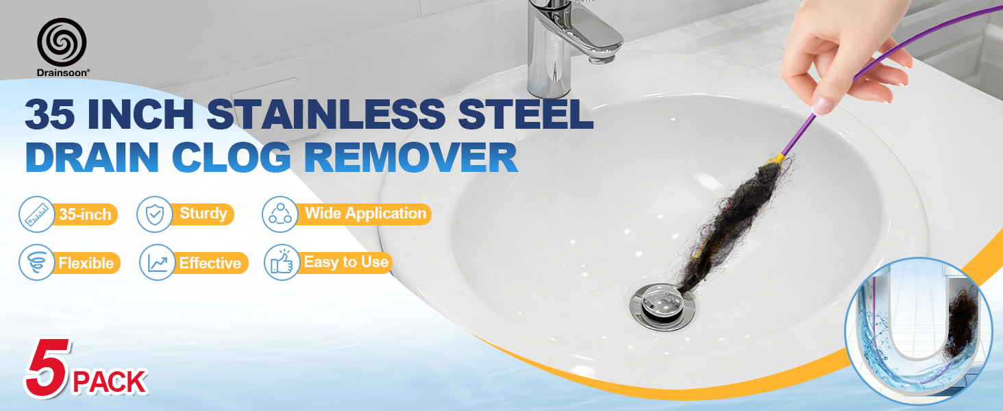 Quick & Easy to Use: Bend the brush head and insert this drain clog remover into the drain. Twist several times to secure the clog, then slowly pull out. Repeat from different angles if needed. Clear slow drain in minutes—no expensive plumber needed