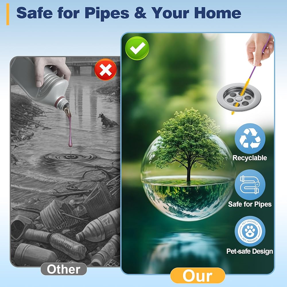 Chemical-Free & Safe for Pipes: Made with recyclable steel and nylon materials, this hair drain clog remover tool contains no harsh chemicals. It's safe for pipes, pets, and family, making it an eco-conscious choice for your home