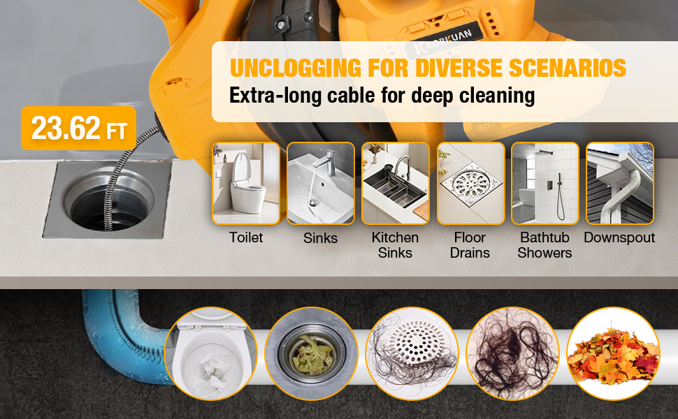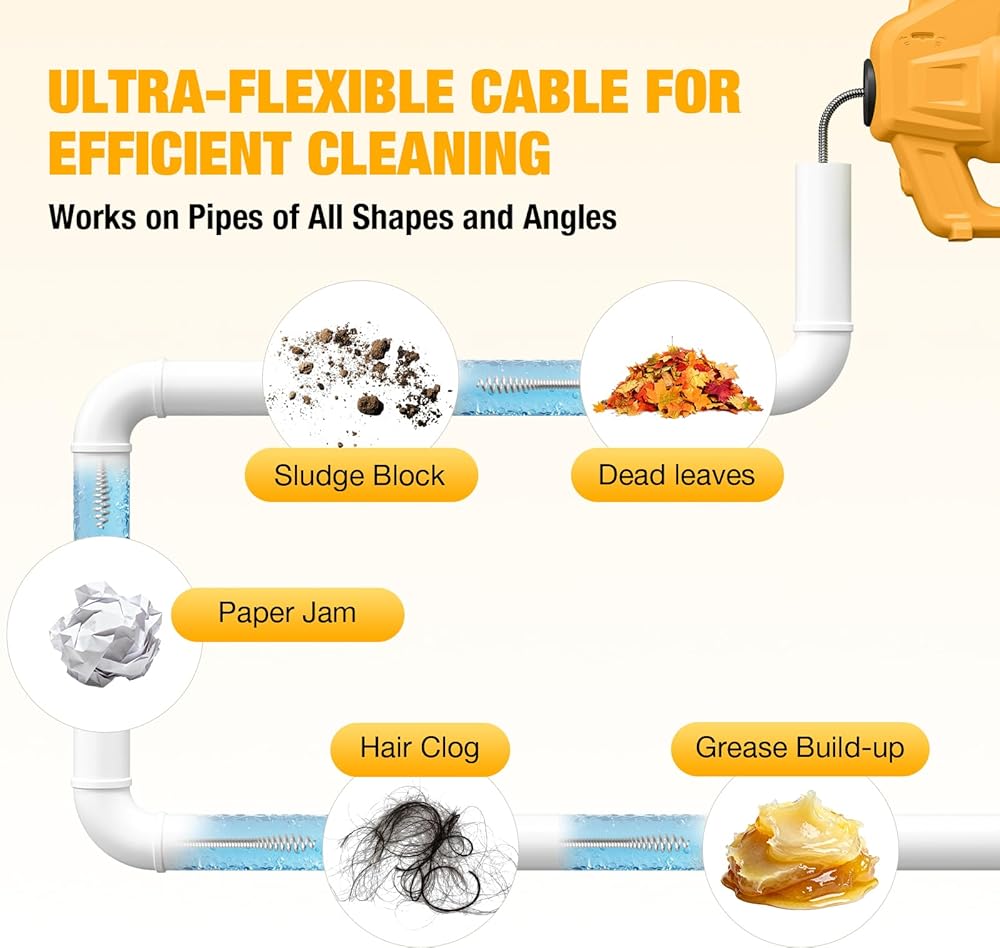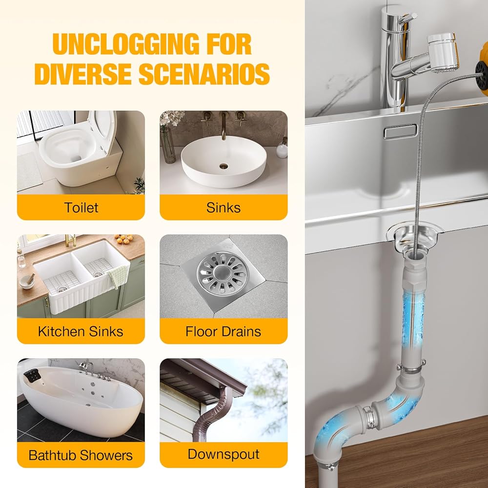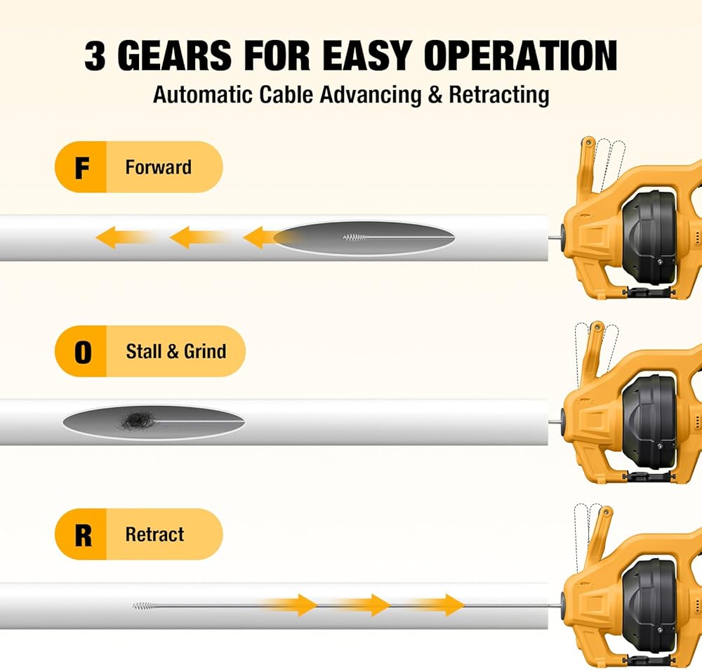 • High-Performance Electric Drain Snake: Compared to traditional clog-removing tools, our electric drain auger is more efficient and can be reused multiple times, easily resolve clogs without the need for a professional, saving time and money