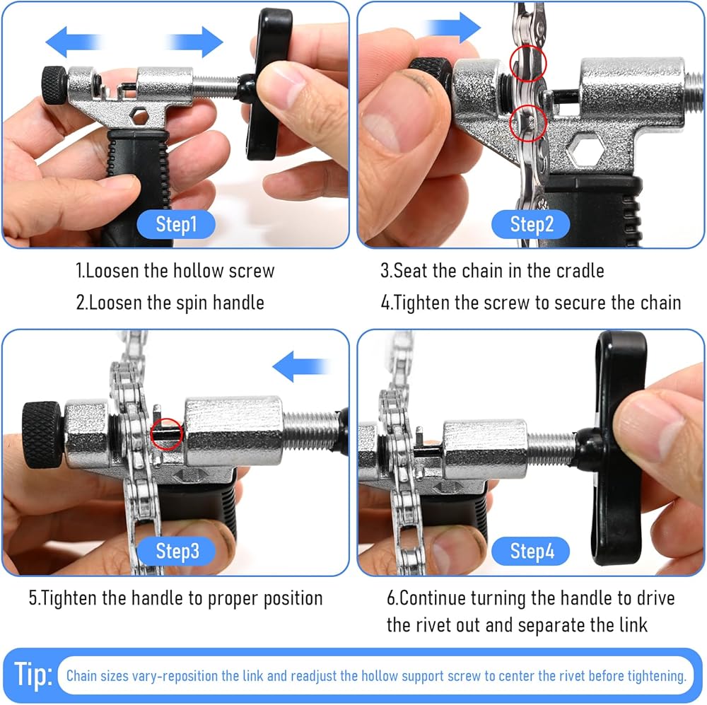 Crafted from premium chrome-vanadium steel, this tool is built to last. Whether you're working on a road bike, mountain bike, or even a motorcycle chain, No more fumbling with complicated tools—even beginners can master chain removal and installation in minutes.