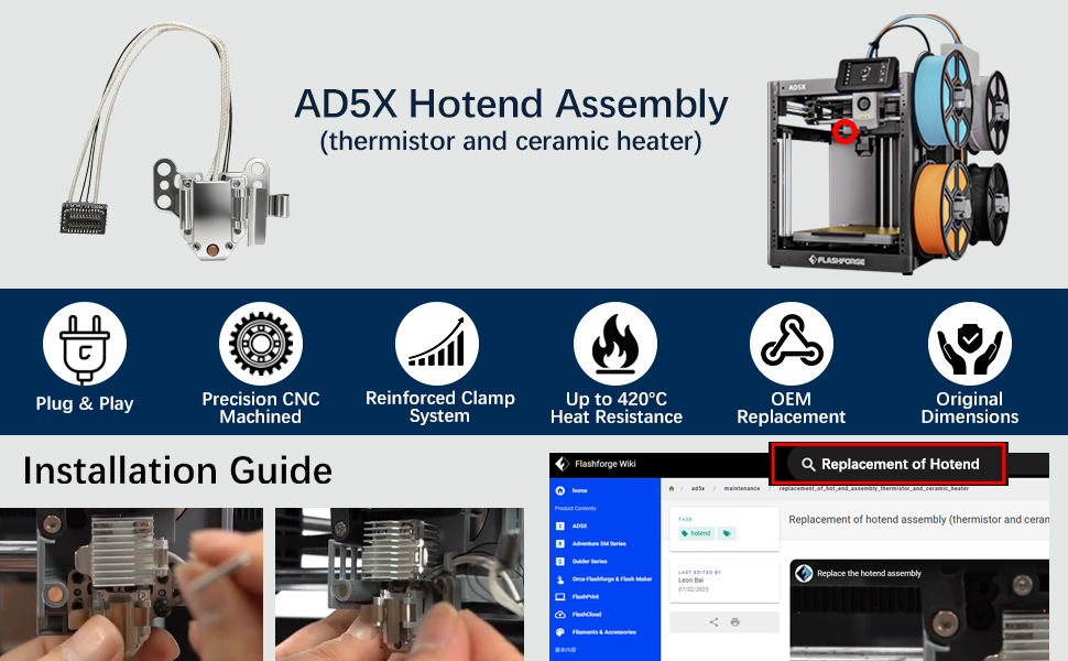 • 【OEM Version, Perfect Fit for Flashforge AD5X】Designed exclusively for the Flashforge AD5X, this AD5X heating assembly kit ensures seamless compatibility and reliable performance. A direct replacement for worn or damaged AD5X hotend assembly