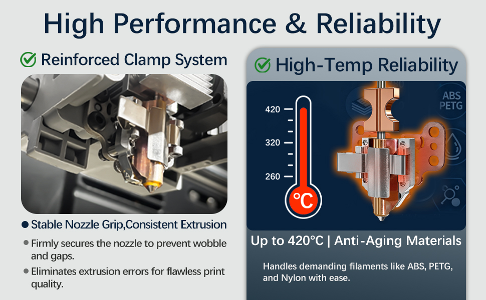 • 【Durable, Wear-Resistant Build】Made from reinforced, thickened materials that resist wear, heat aging, and prolonged high-temperature exposure. Extend the life of your AD5X extruder and reduce replacement frequency with a more reliable, long-lasting hotend assembly