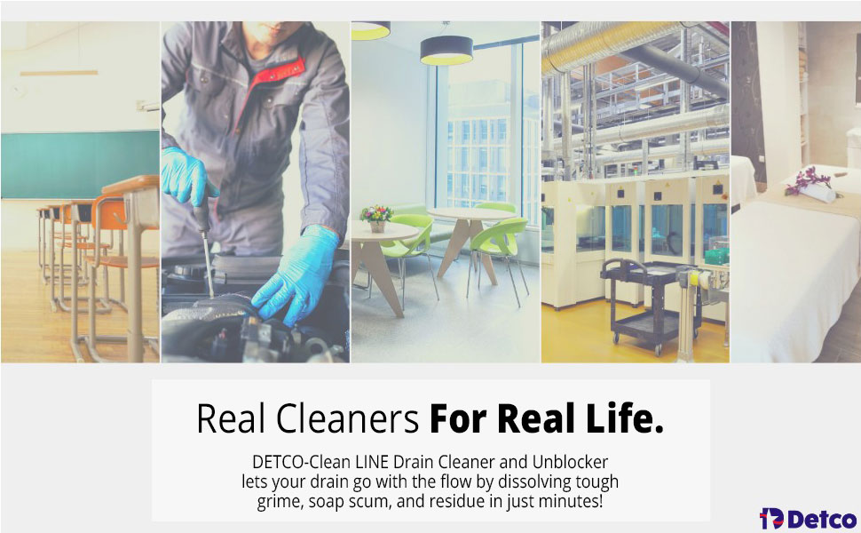 GO WITH THE FLOW: DETCO-Clean LINE Drain Cleaner and Unblocker keeps pipes free flowing while helping to reduce the occurrences of stoppages by dissolving goop, grease, grime and other blockages and build-up quickly
