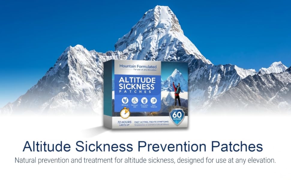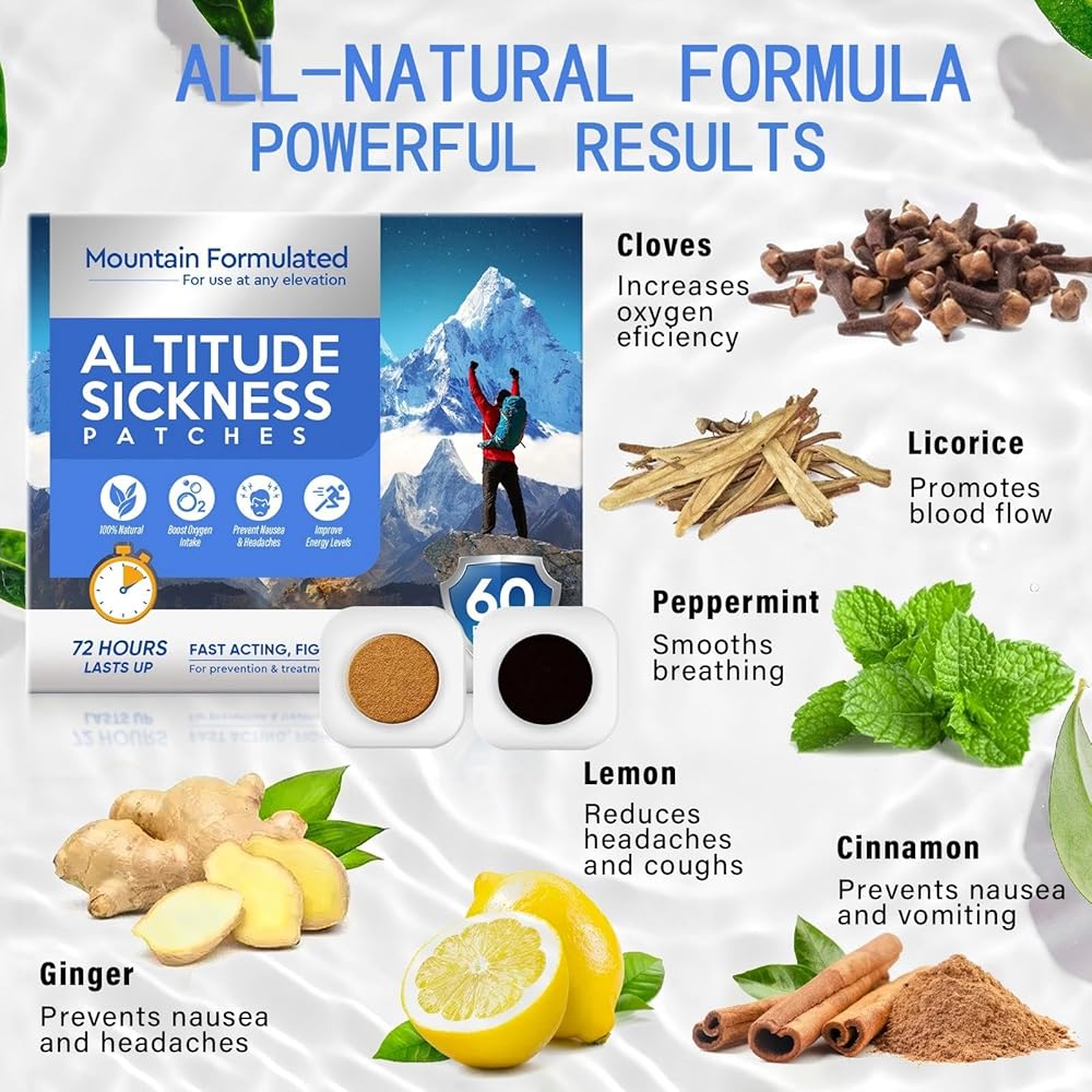 Altitude Sickness Prevention Patches for Mountain Travel and High Elevation Relief, Natural Herbal Patches to Reduce Nausea Dizziness and Fatigue During Hiking 60 Count Skin Friendly