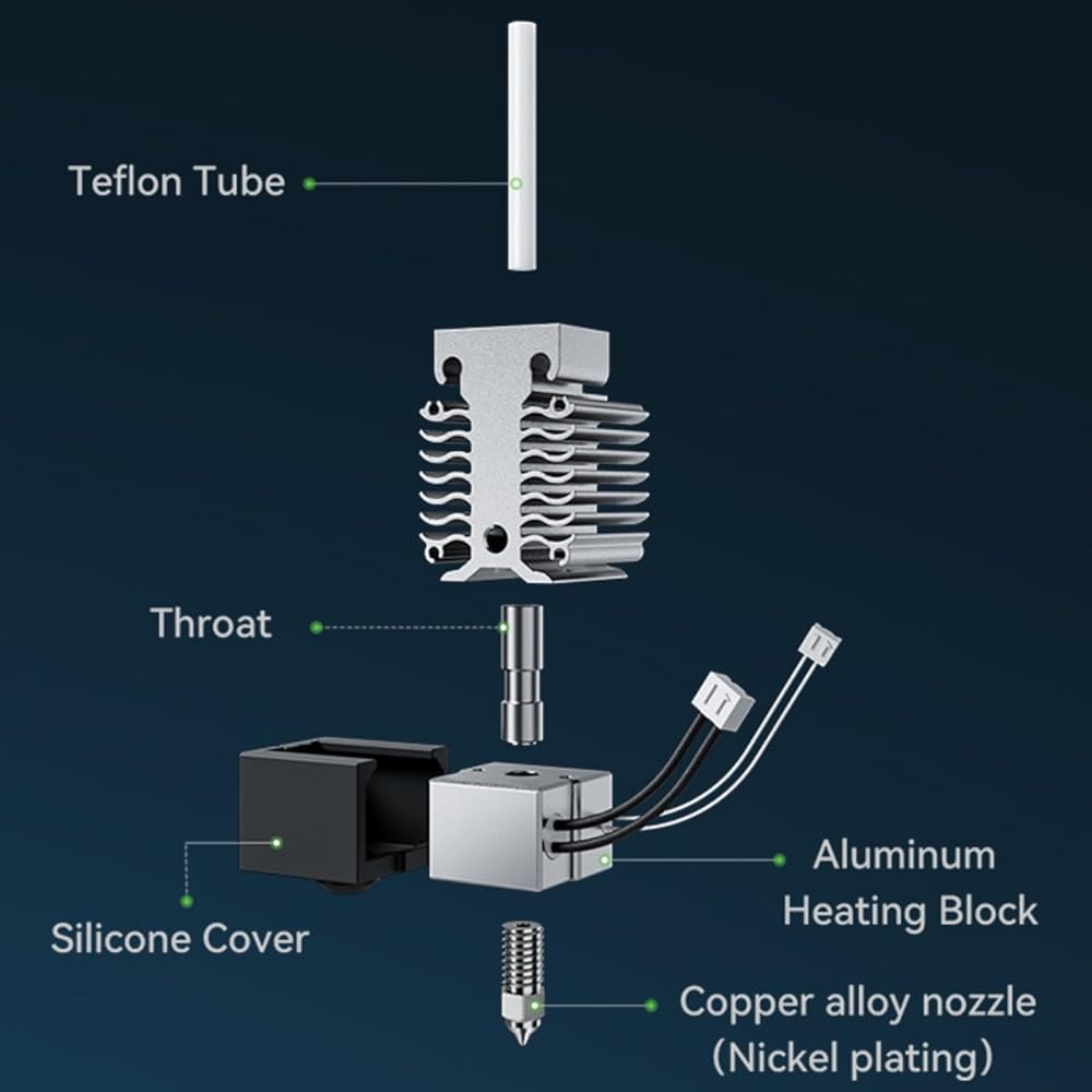 4️⃣ Tool-Free Installation - ender-3 v3 se print head kit: Pre-assembled hotend kit with Teflon tubing and spring steel collars enables full replacement in <5 minutes.