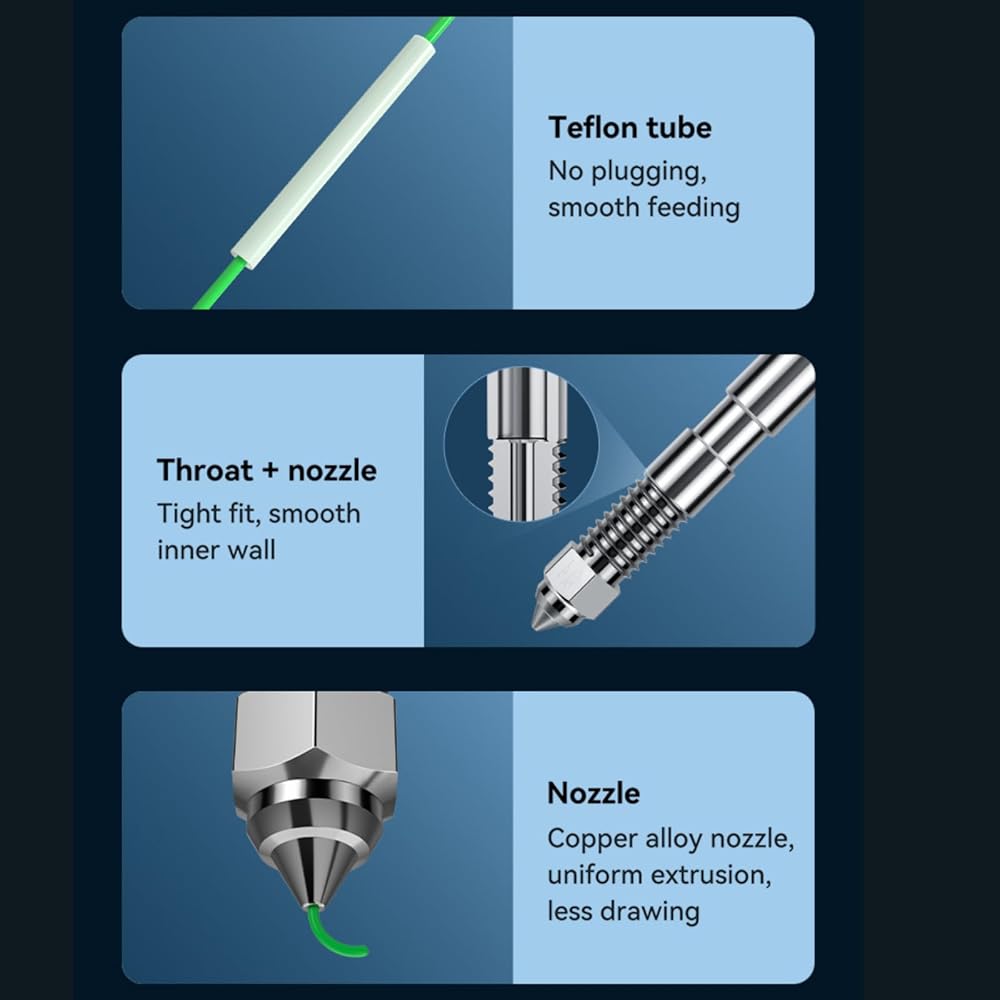 2️⃣ Industrial-Grade Durability - for ender 3 v3 se nozzle: Hardened stainless steel throat tube withstands 300°C continuous operation (certified by SGS Lab), outlasting standard copper nozzles by 3x lifespan.