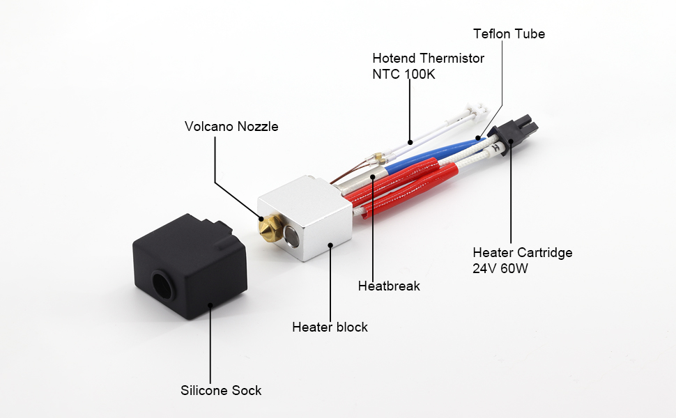This Kobra 2 Max hotend Upgrade kit comes pre-assembled with heating tube, NTC3950 thermistor, nozzle and silicone sock, and aluminum heating block, the temperature can reach up to 500 °F / 260 °C.