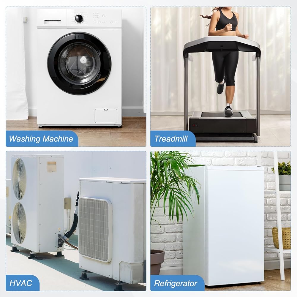 Installation Steps: Clean the floor surface under your appliance, place one vibration pad under each equipment foot, and adjust to ensure the appliance is level and stable.