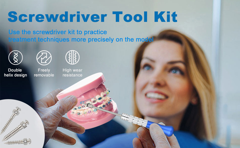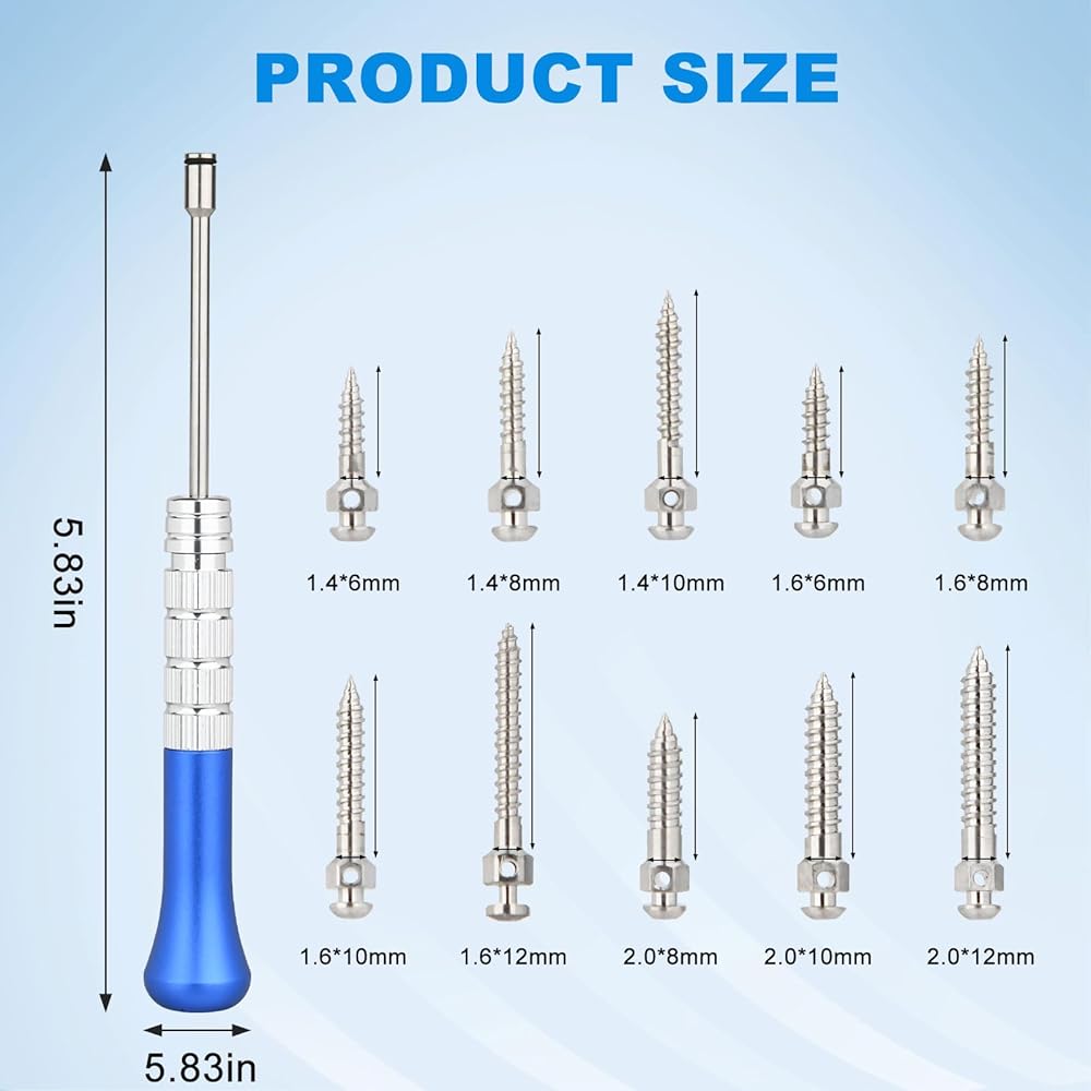 UNIVERSAL TOOL KIT: The kit includes a professional orth/odon/tic handle and 10 mini-screws of varying sizes, compatible with various self-drilling mini-screws for precise placement in different locations.
