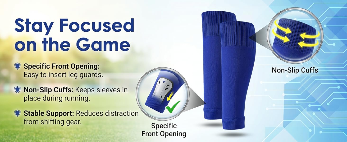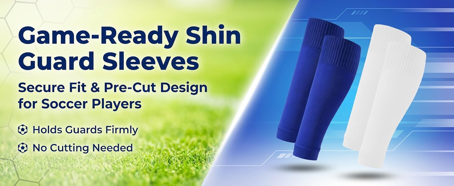 Pre-Cut Match Setup: Designed as pre cut socks with a clean front opening, these sleeves help secure shin guards faster than DIY cut socks and reduce frayed edges. The ready-to-wear build gives players a neater setup for practice, scrimmages and game day