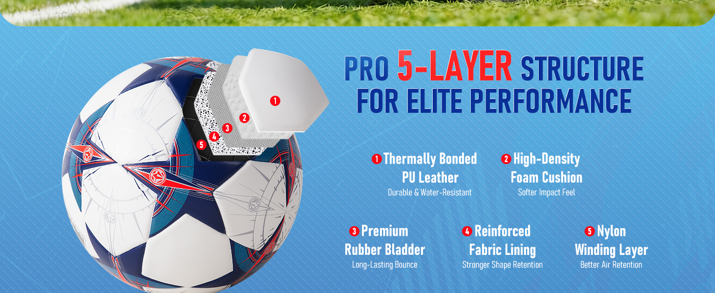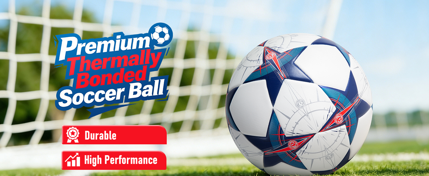 ⚽ PROFESSIONAL THERMAL BONDED CONSTRUCTION This Size 5 soccer ball features advanced thermal bonded technology with a seamless surface, providing superior shape retention, consistent flight, and professional-level performance for match play and training.